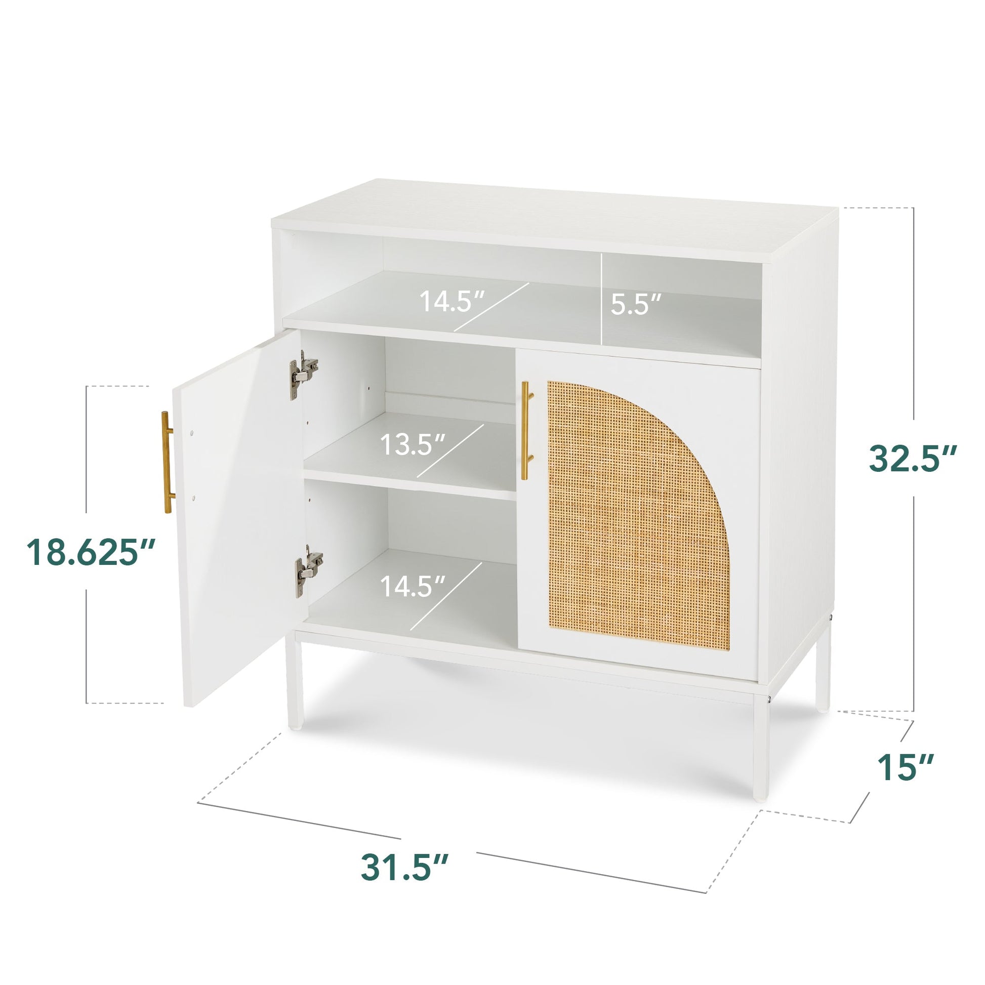 2-Door Rattan Cabinet, Buffet, w/ Cord Cutout & Storage Shelf, Natural