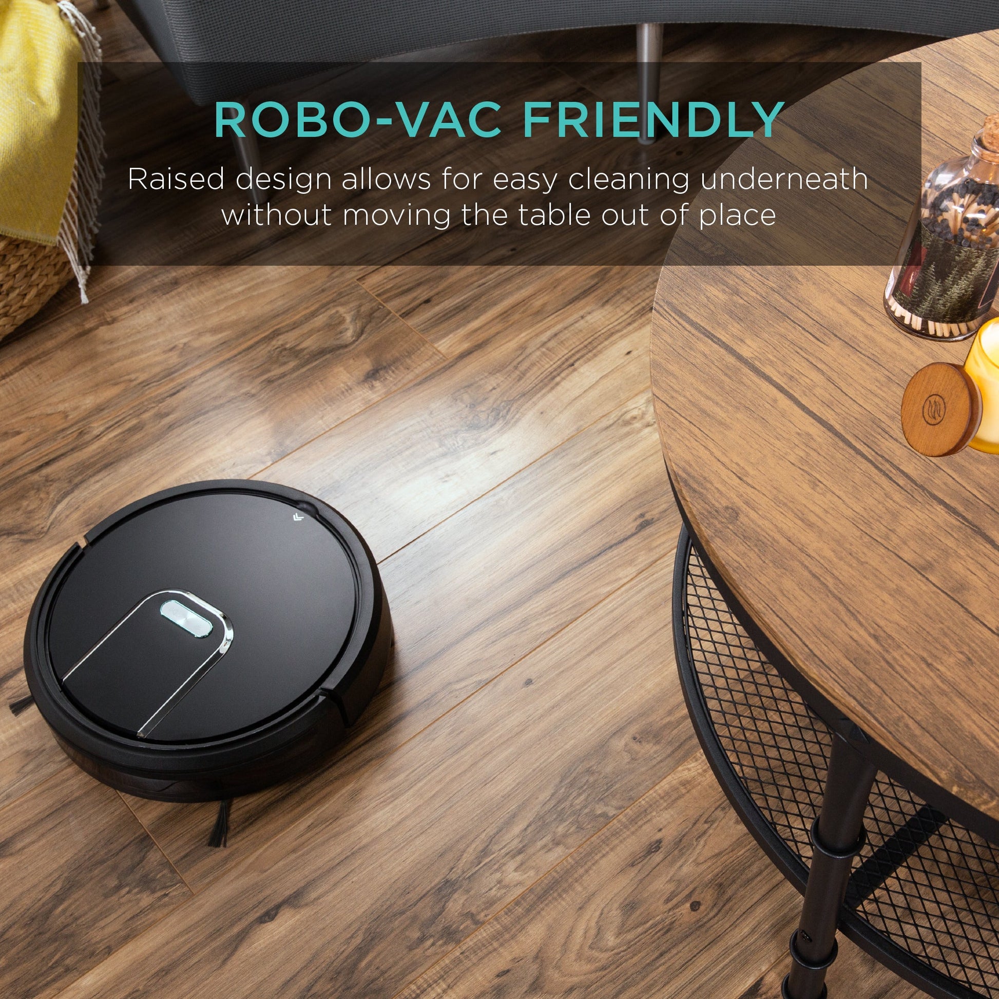 2-Tier Round Industrial Wood & Steel Coffee Table, Storage Shelves - 35.5in