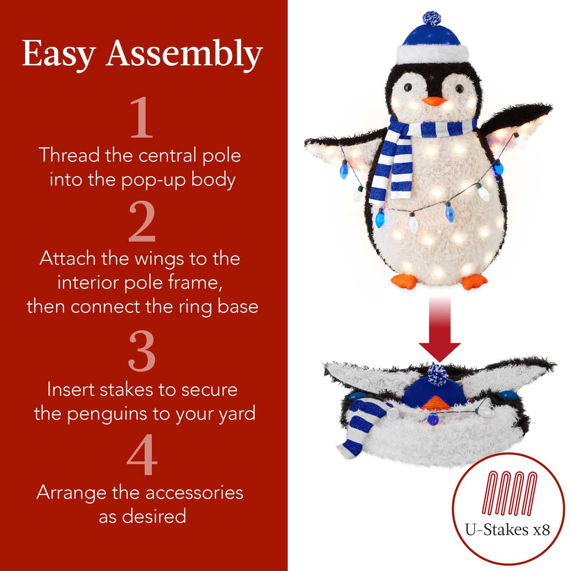 2pc Lighted Pop-Up Penguin Family Christmas Decoration w/ 150 Lights - 3ft