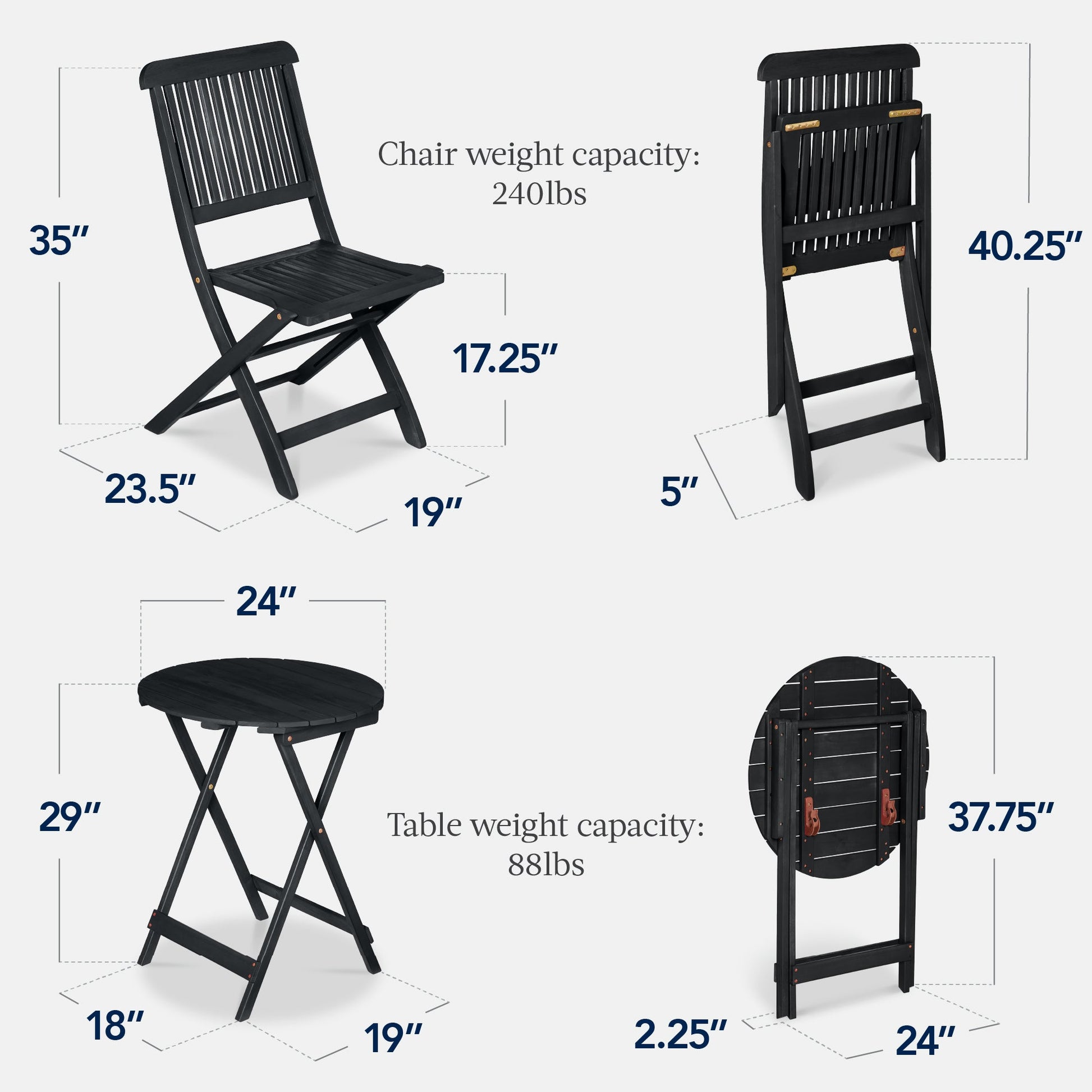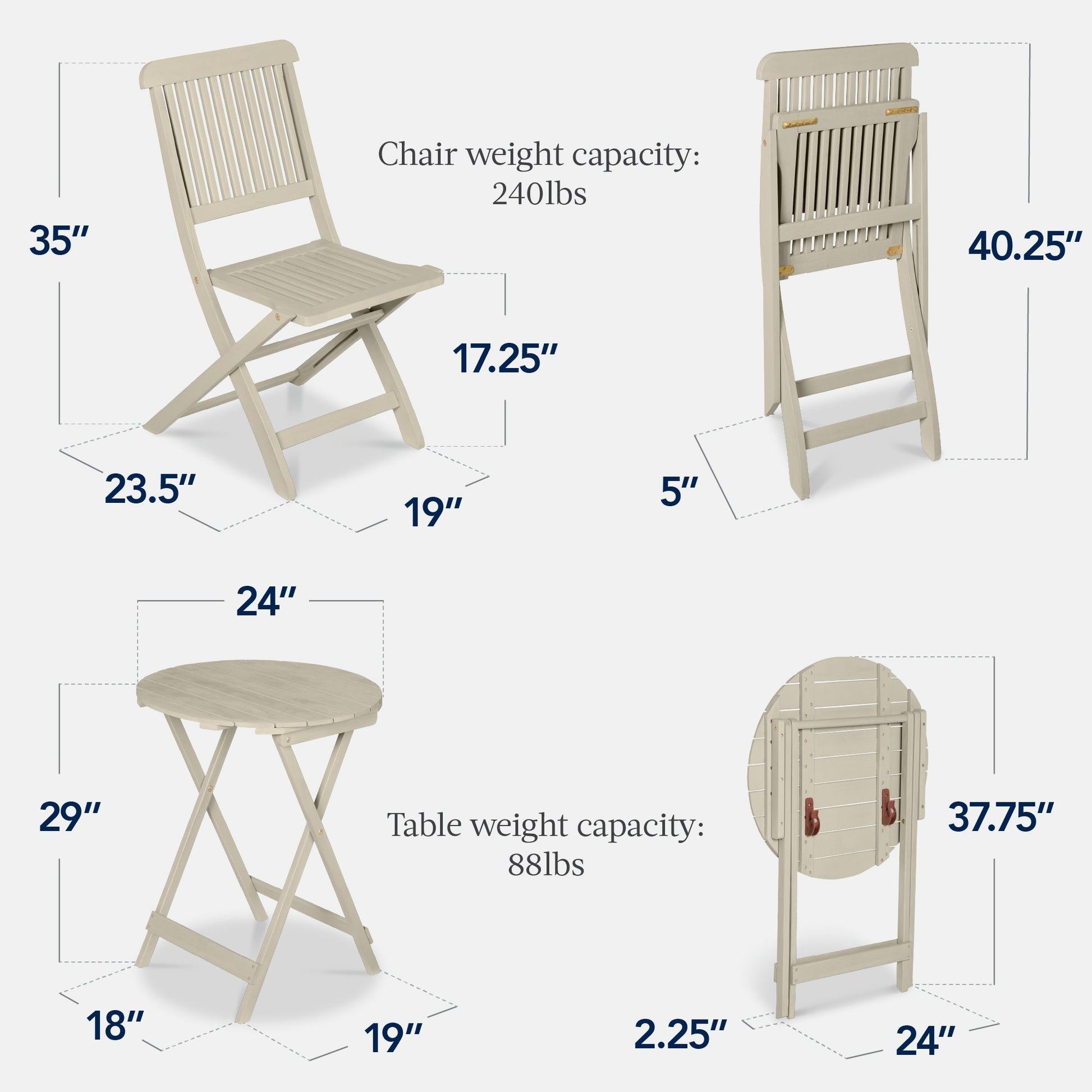 3-Piece Acacia Wood Bistro Set w/ Folding Table, 2 Chairs