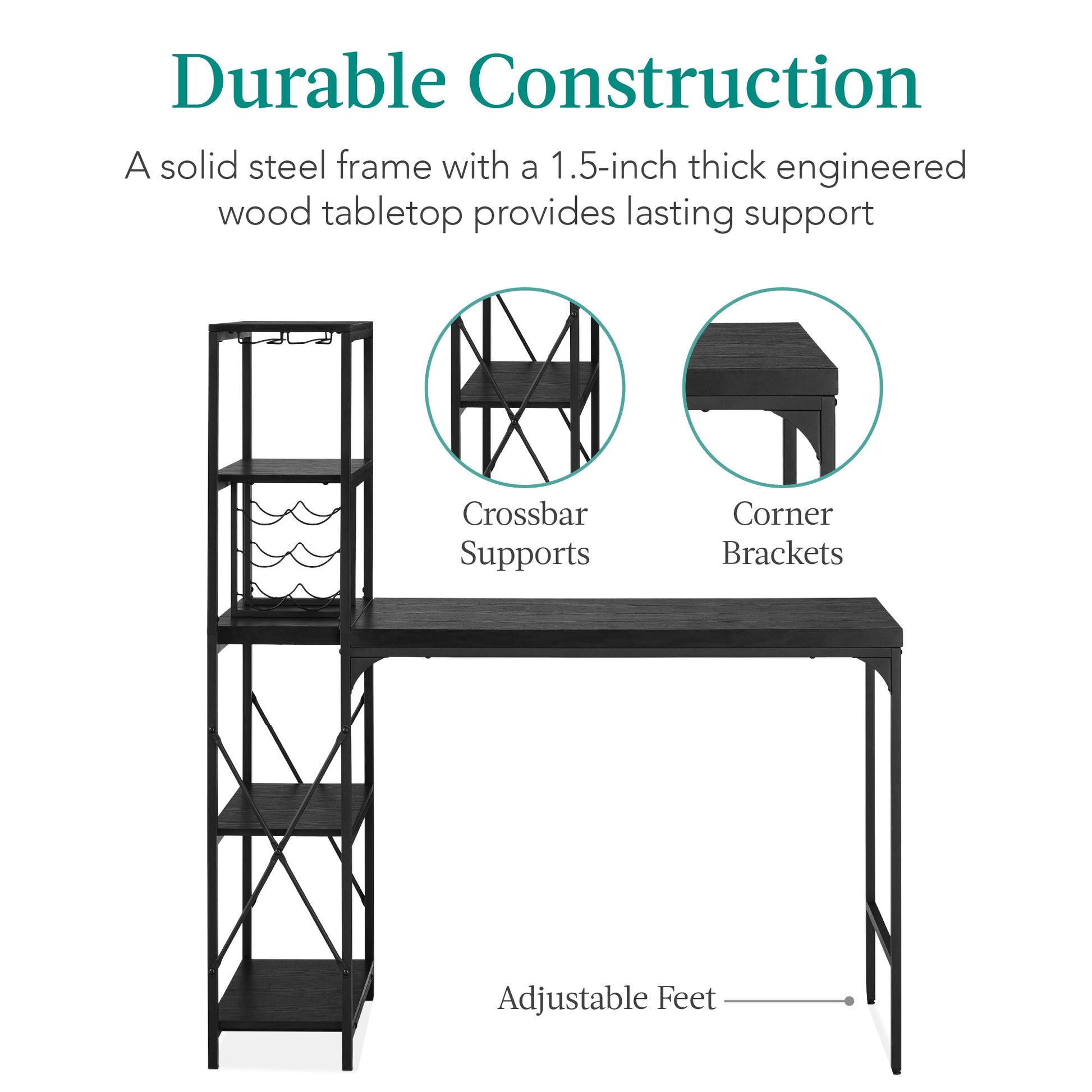 3-Piece Bar Height Dining Set w/ Bottle Rack, Glass Storage, 5 Shelves