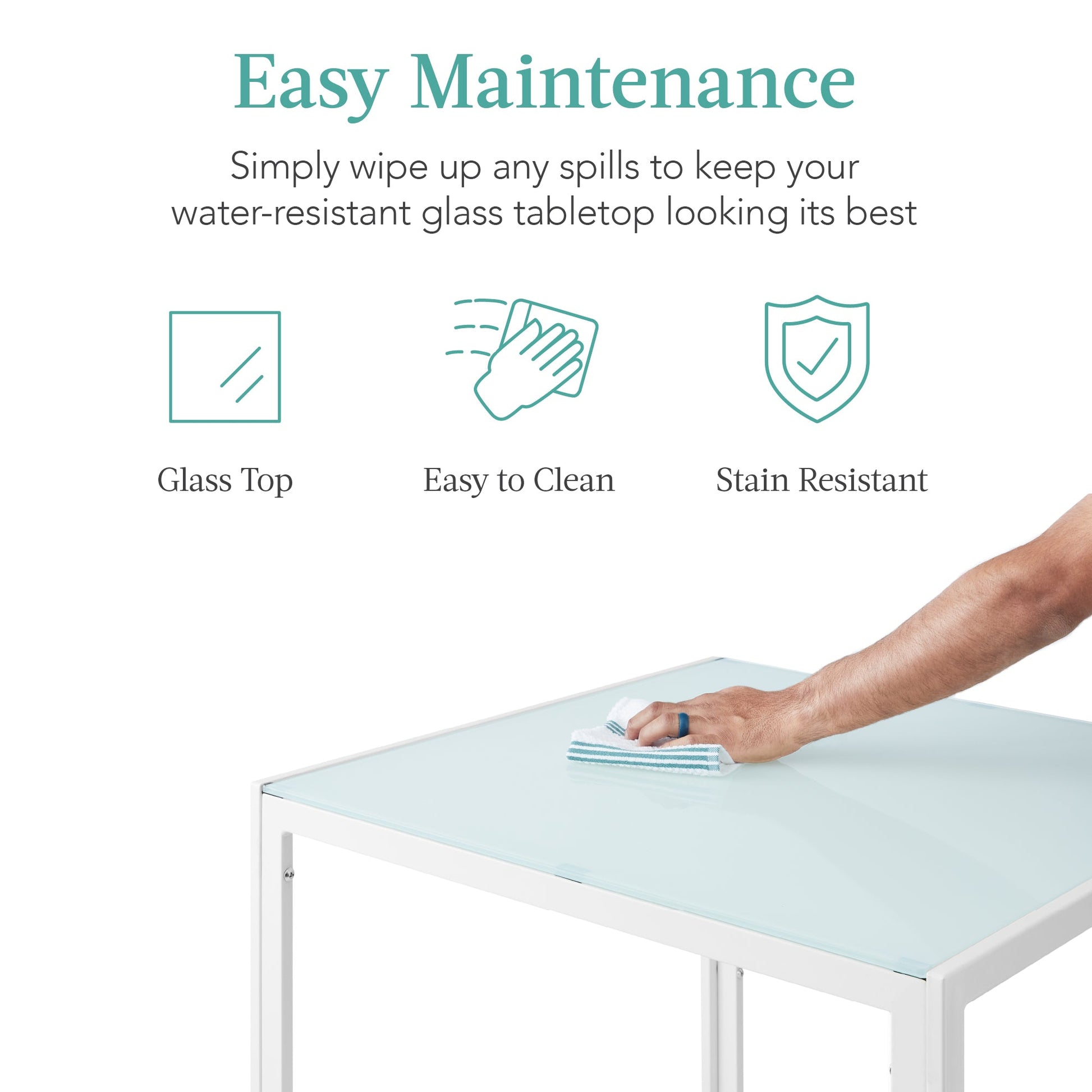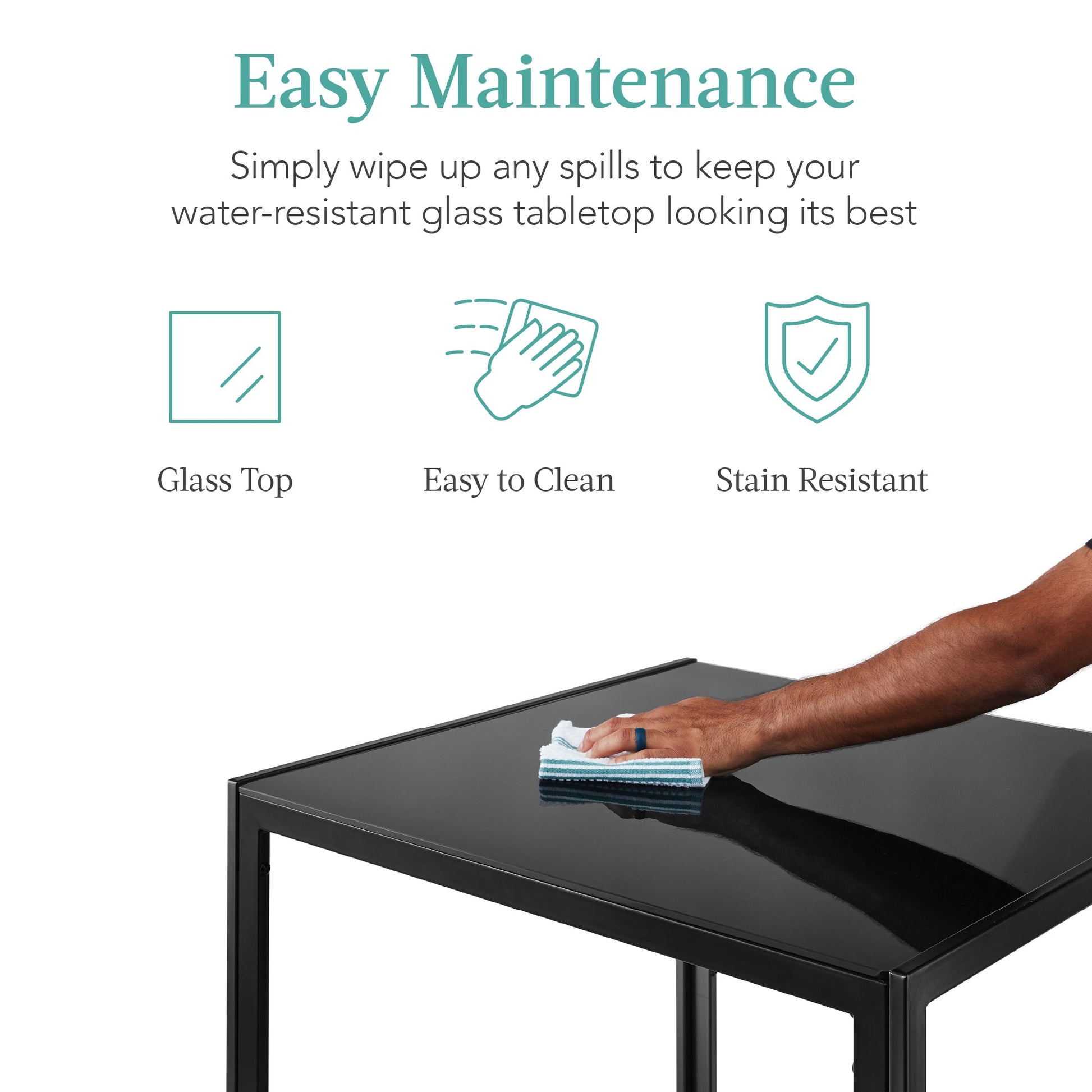 • EASY MAINTENANCE: In case of spills, the water-resistant glass tabletop allows for the easiest cleanup possible; simply wipe away the mess and be done in seconds!