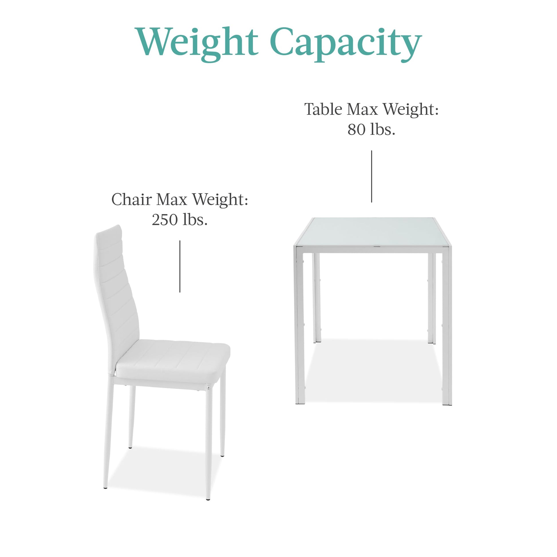• WEIGHT CAPACITY: The table holds up to 80 pounds while each chair comfortably supports up to 250 pounds to create a reliable addition to any kitchen, dining room, or breakfast nook