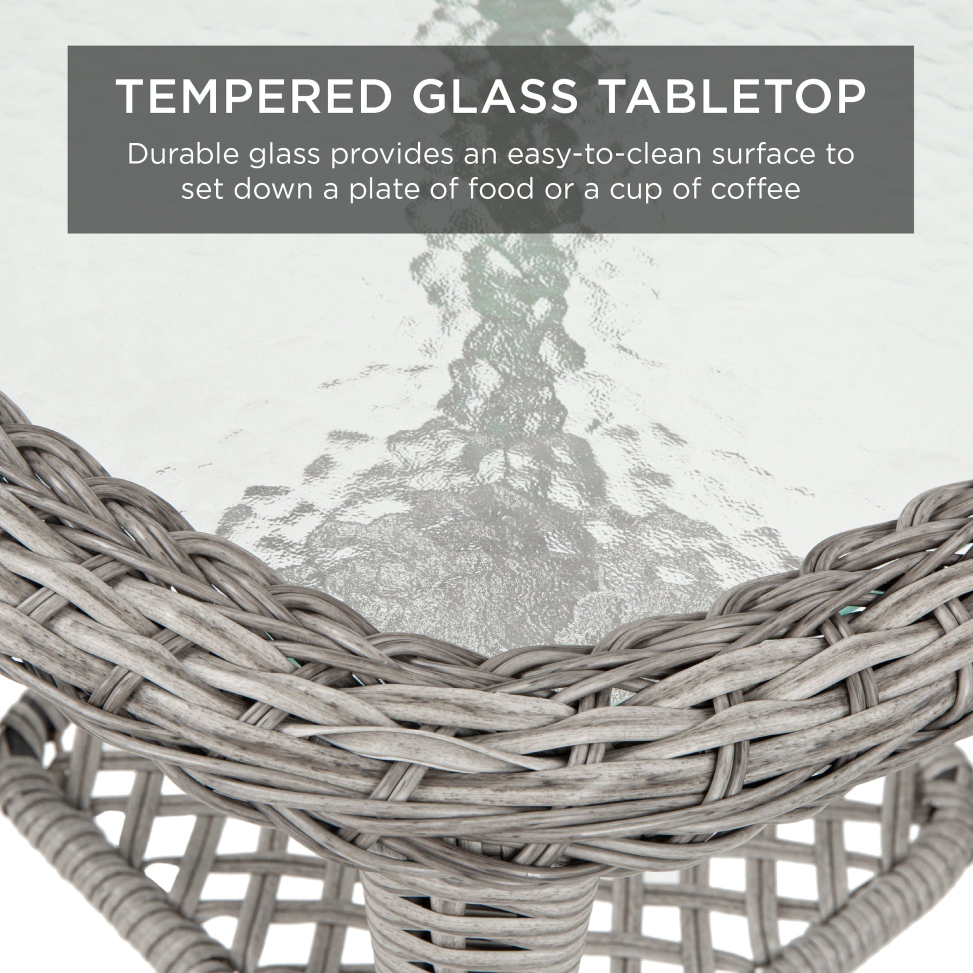 • SIDE TABLE: Includes a matching tempered-glass side table to complement your patio nook, and to provide an easy-to-clean surface for drinks and outdoor meals