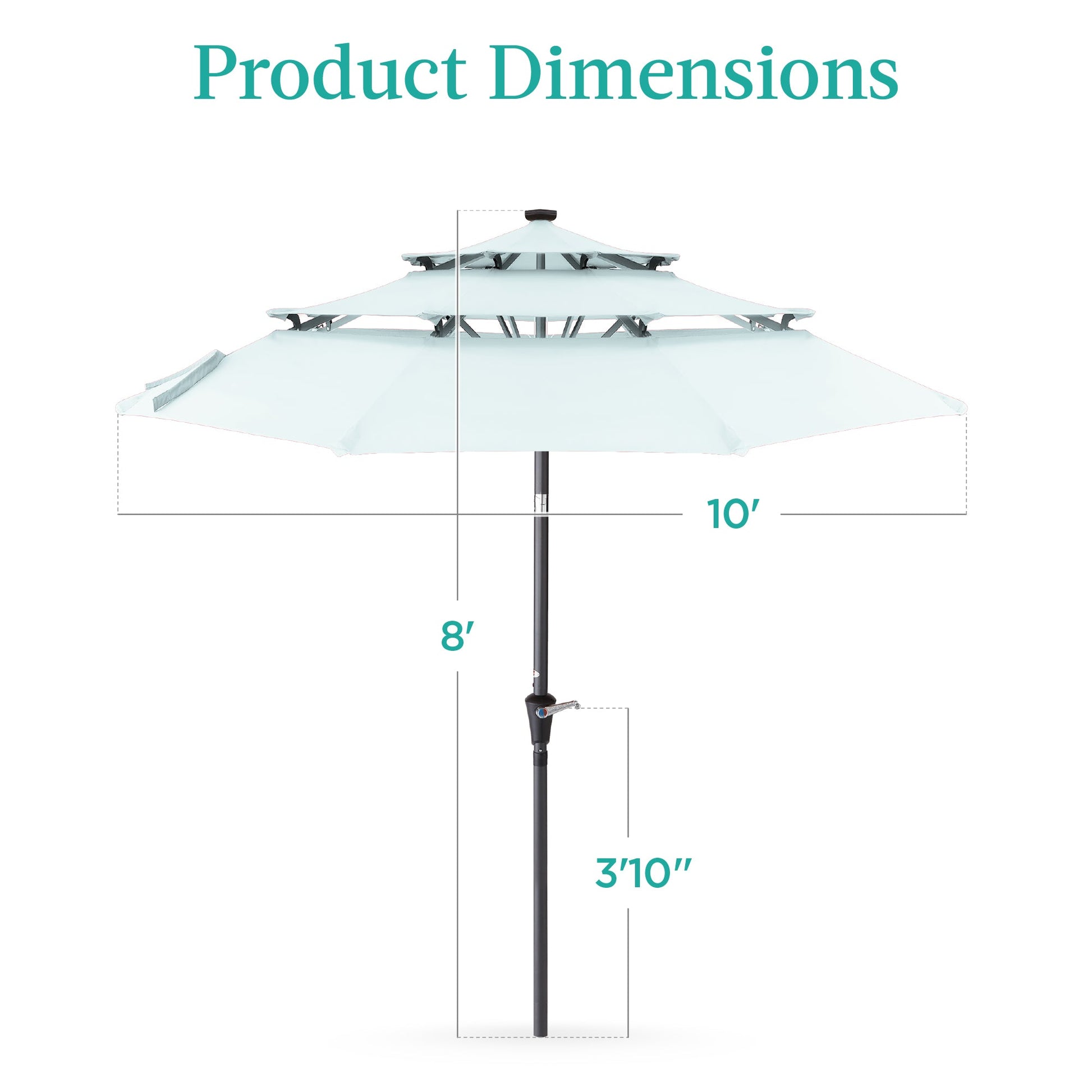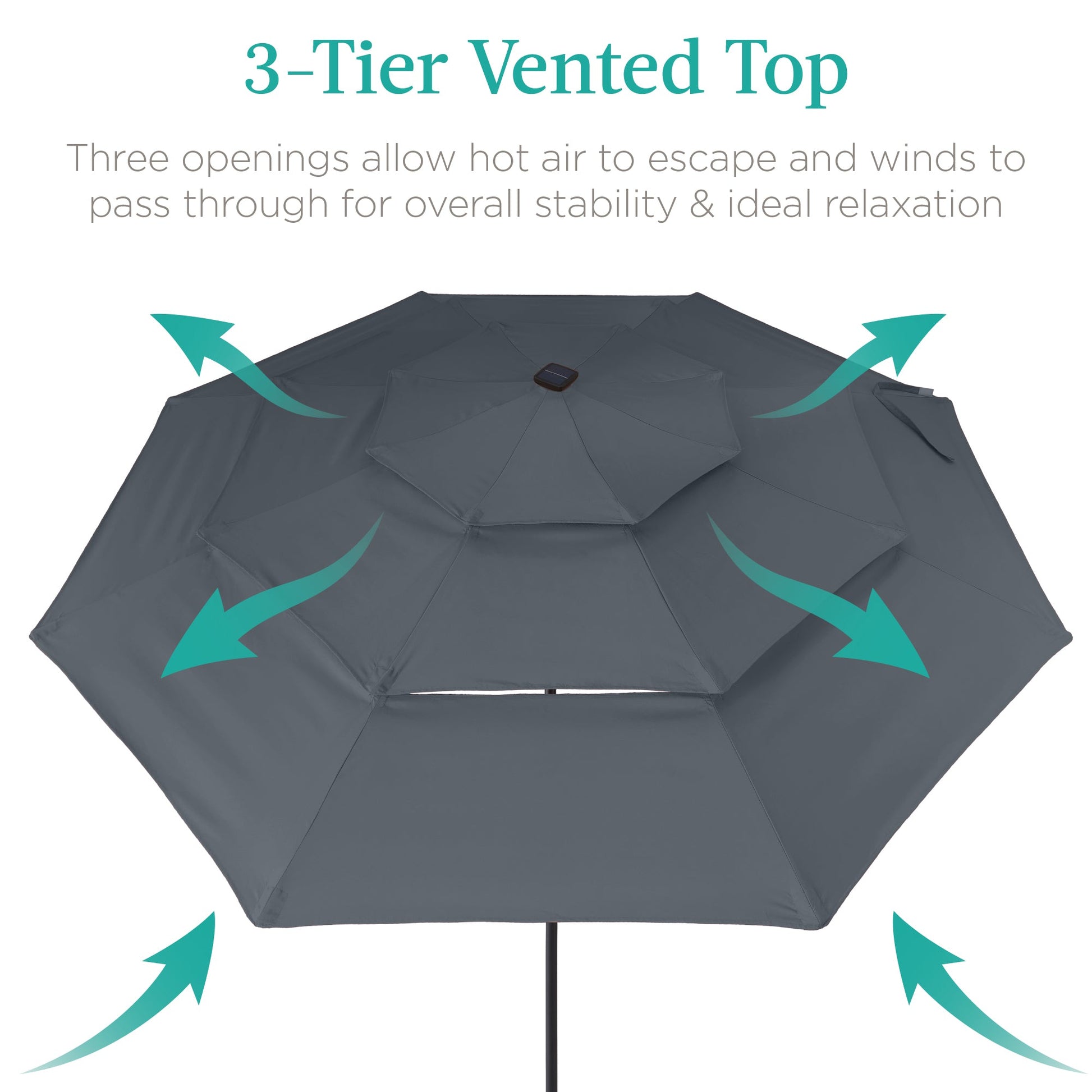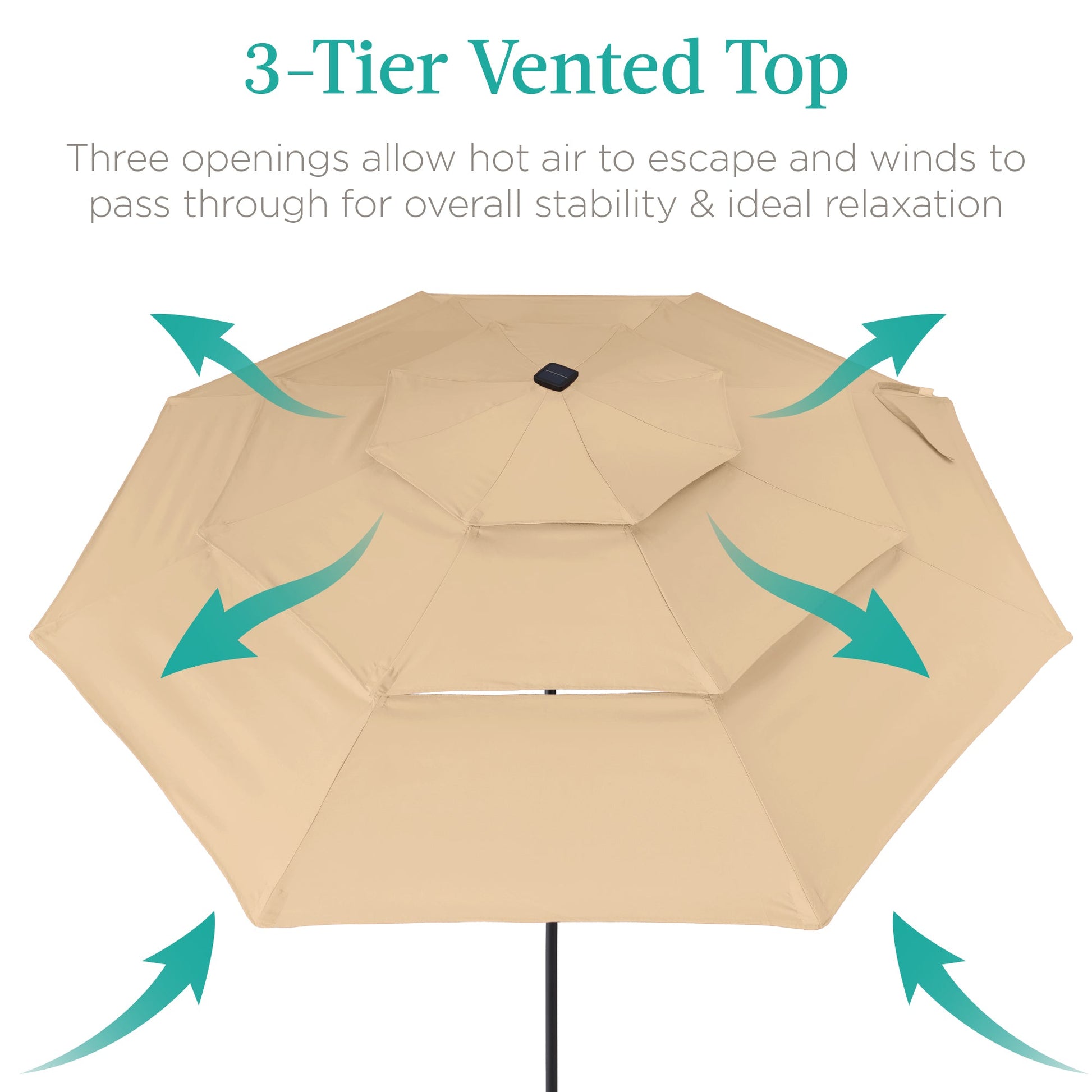 3-Tier Solar Patio Umbrella w/ LED Lights, Tilt Adjustment, Crank - 10ft
