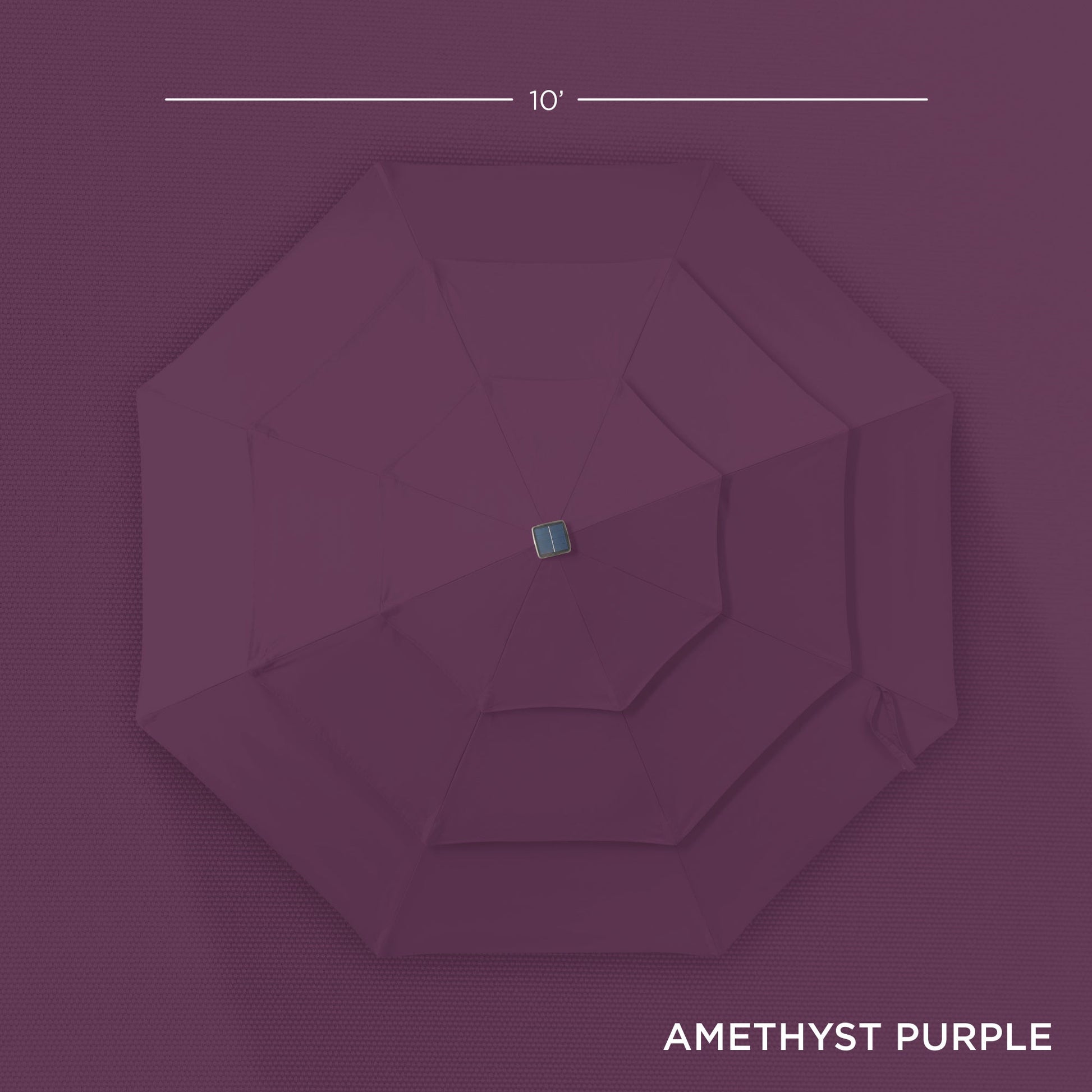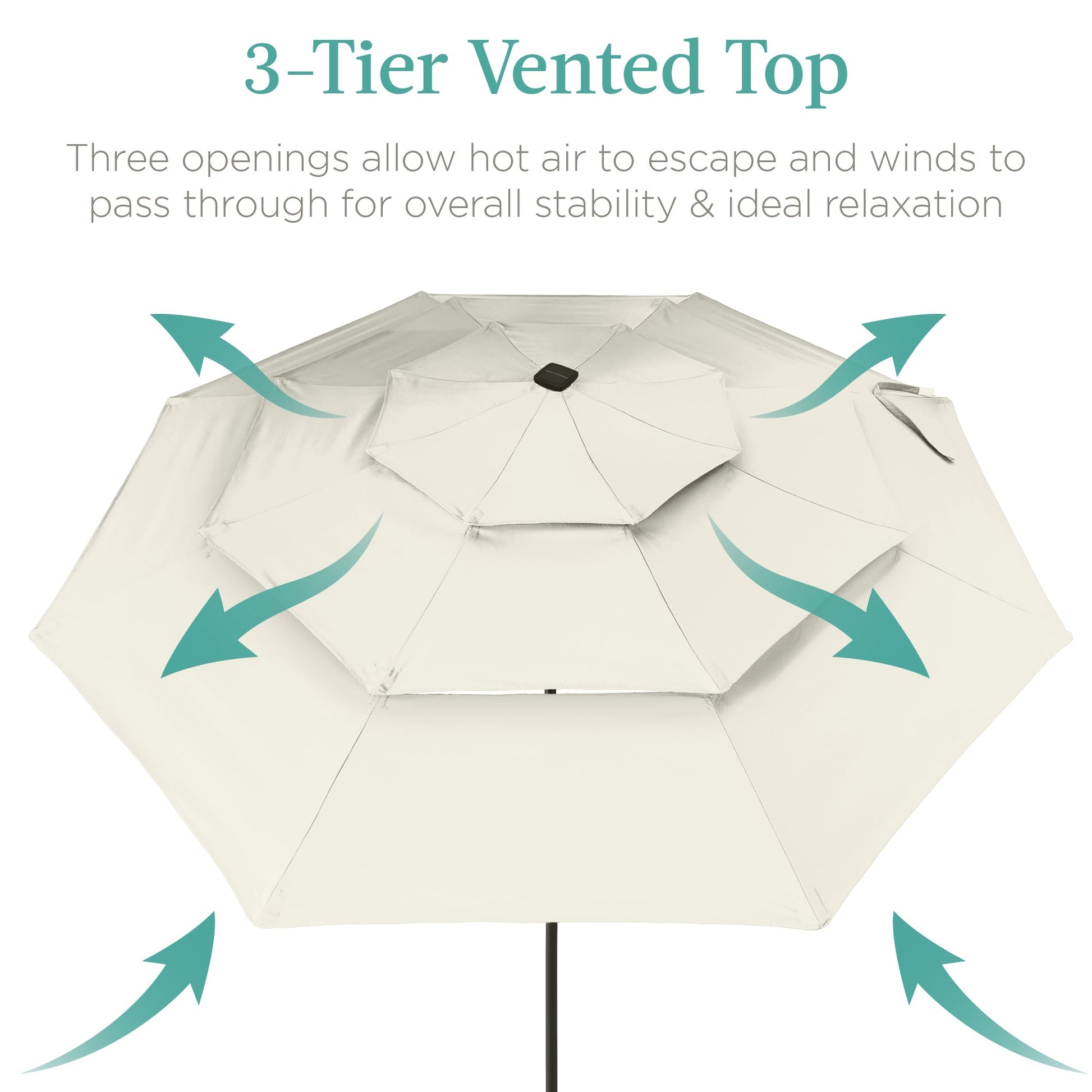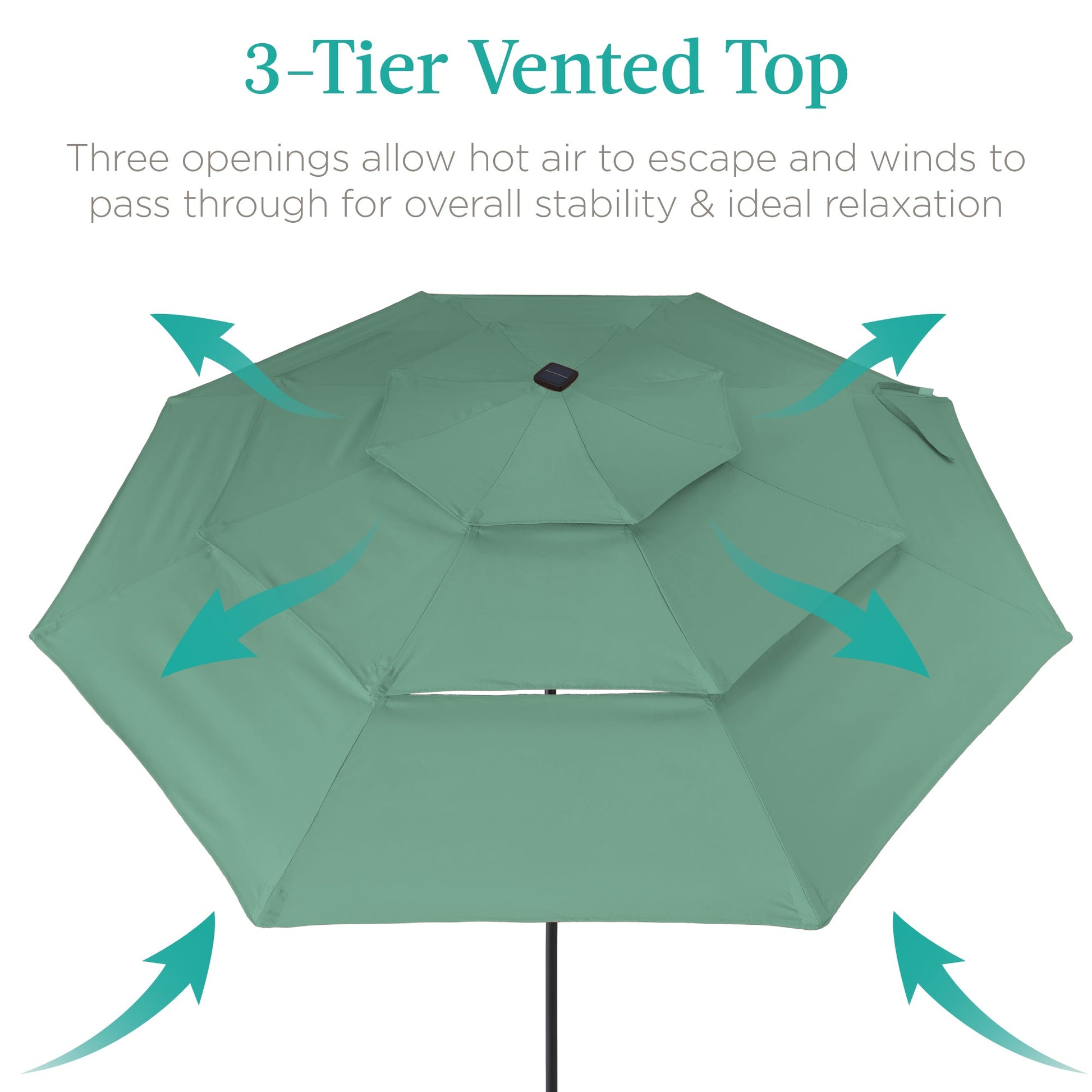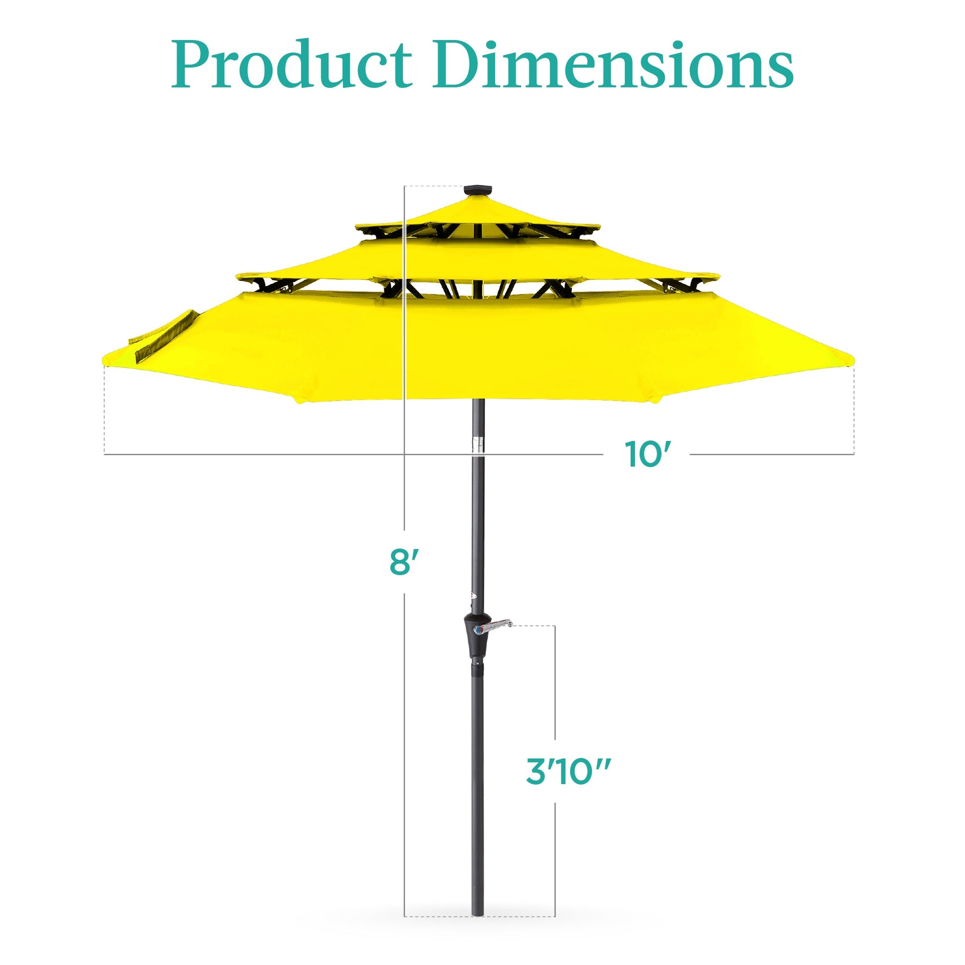 3-Tier Solar Patio Umbrella w/ LED Lights, Tilt Adjustment, Crank - 10ft