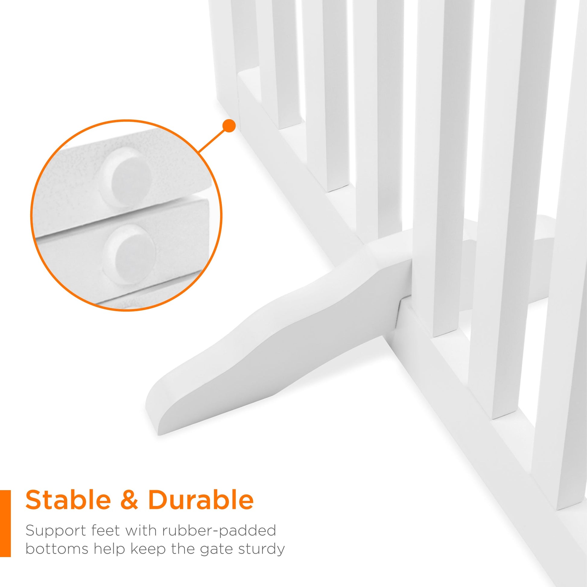 31.5in 3-Panel Freestanding Wooden Pet Gate w/ Door, Support Feet