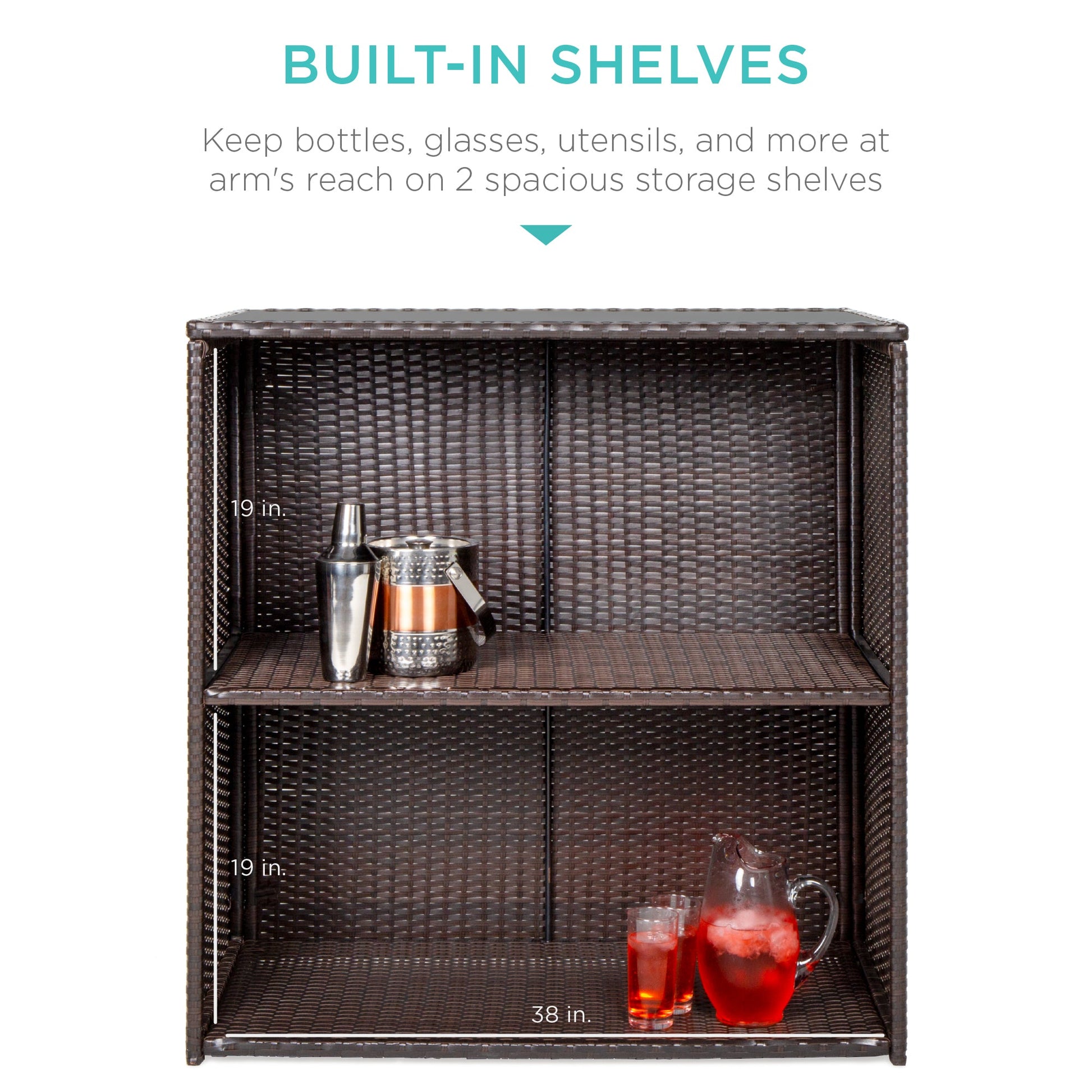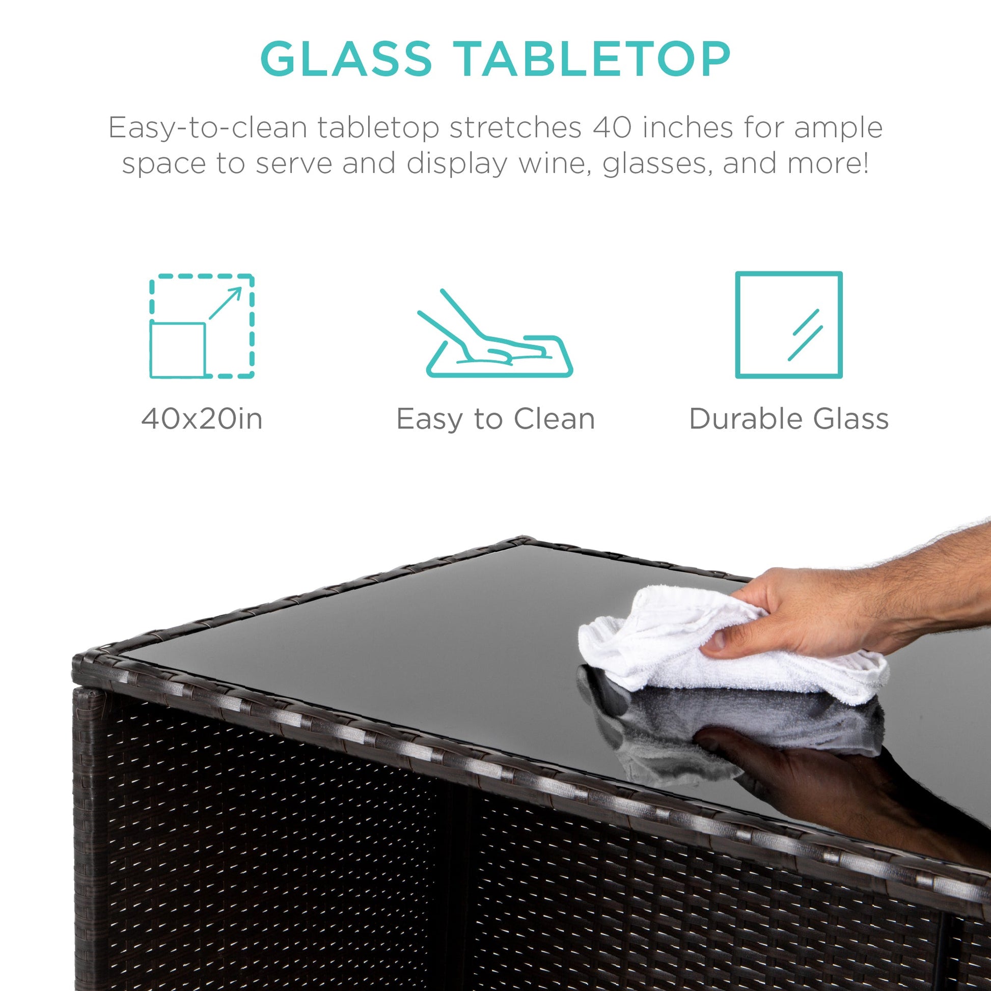 3-Piece Outdoor All-Weather Wicker Bar Table Set w/ 2 Stools