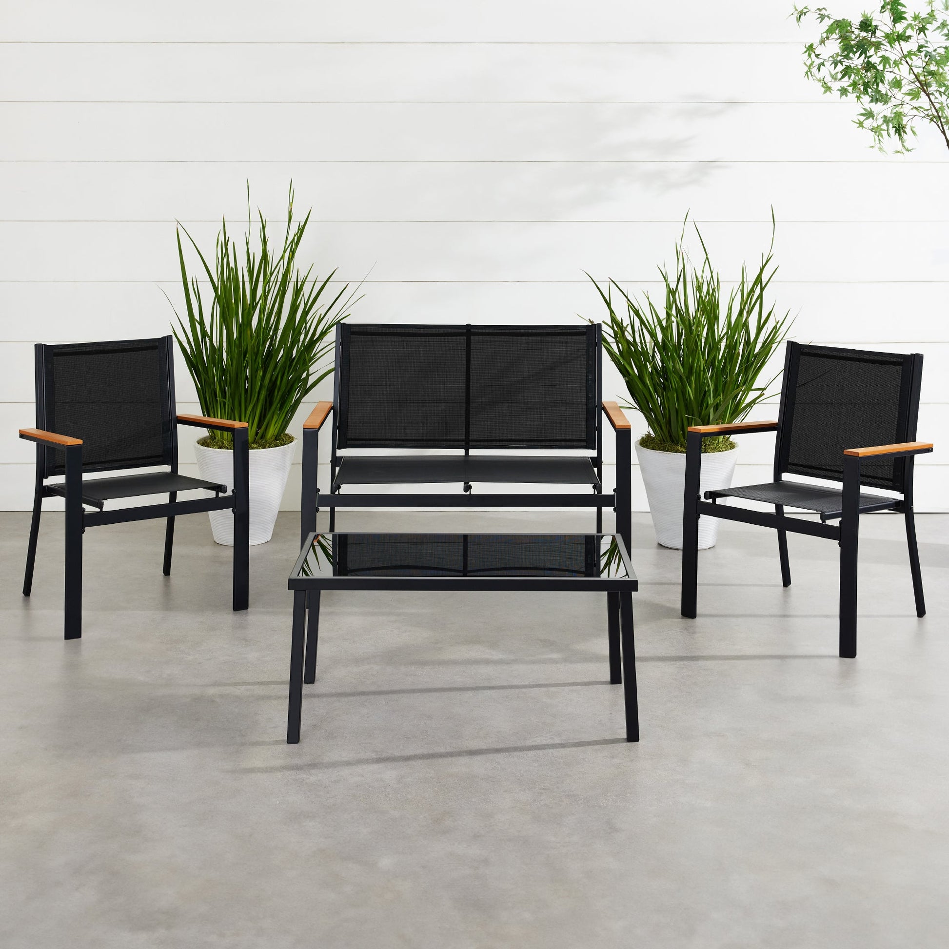 4-Piece Textilene Outdoor Conversation Set w/ Cushions, Table