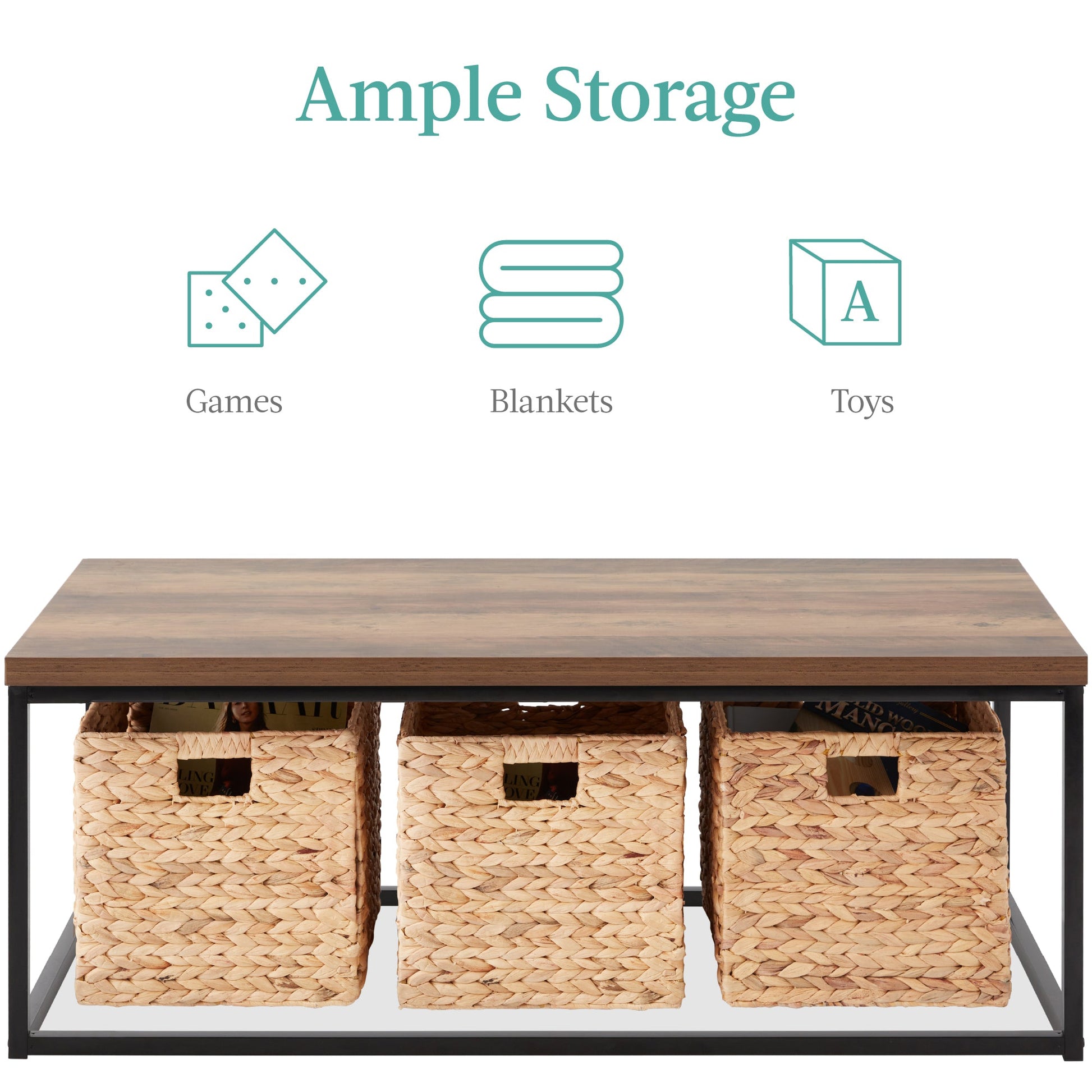 44in Modern Industrial Rectangular Wood Grain Coffee Table w/ Metal Frame