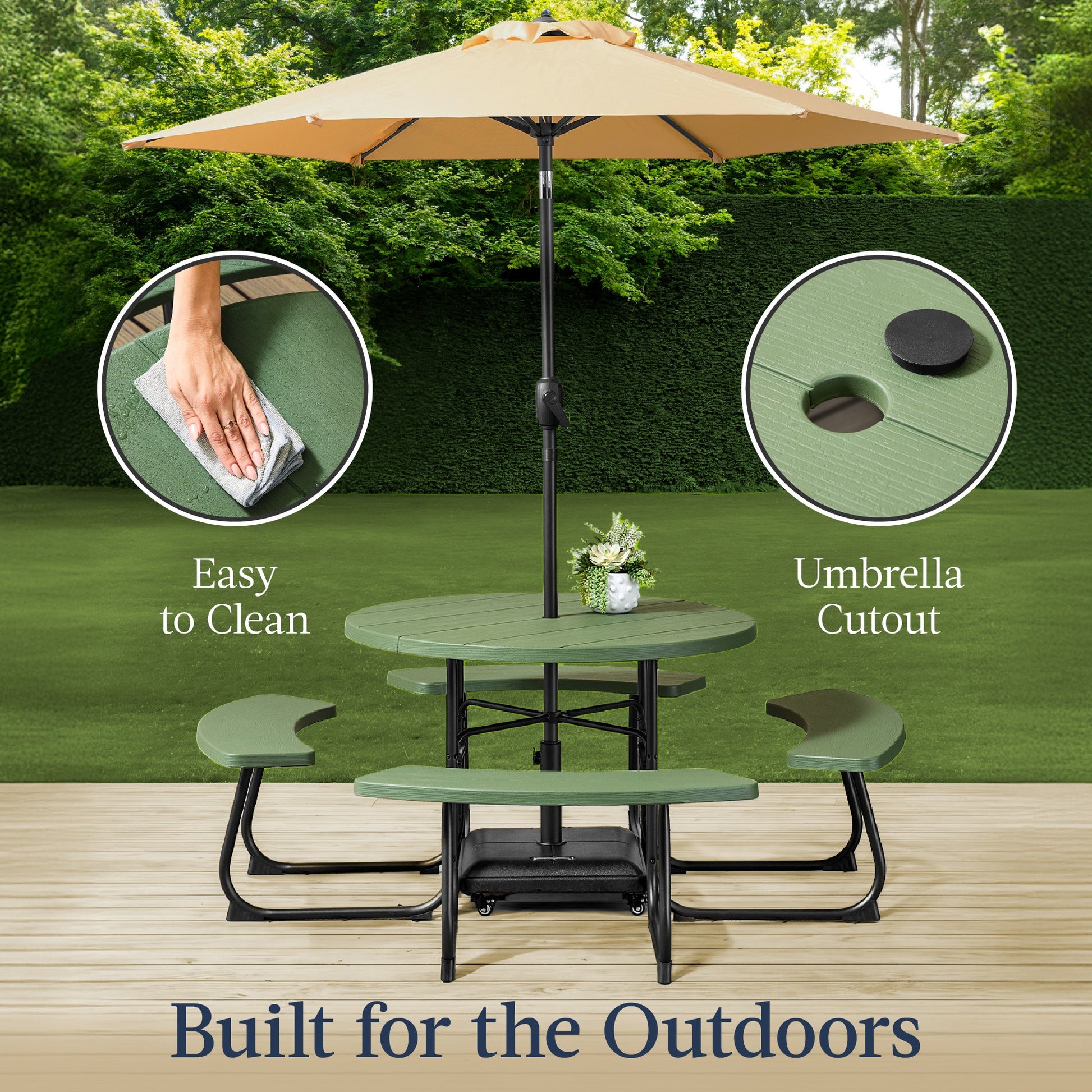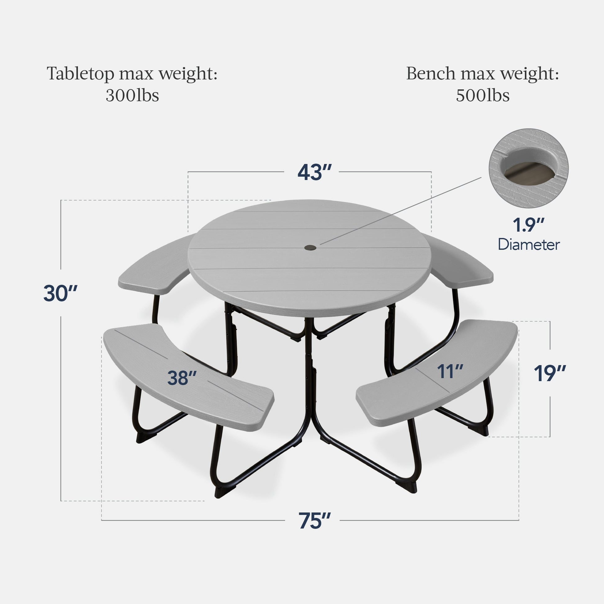 8-Person Circular Picnic Table w/ Umbrella Hole, 4 Benches