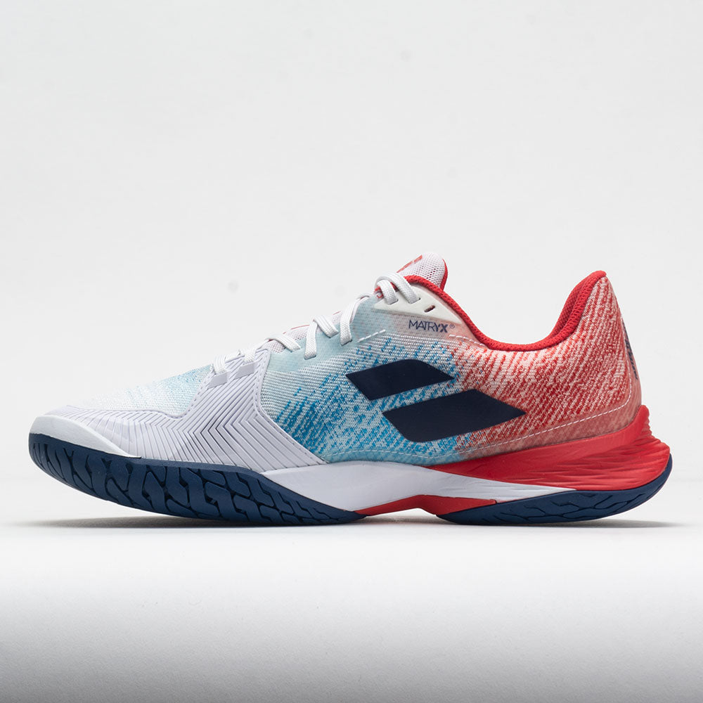 Fly quickly around the court in the Babolat Jet Mach 3! Every detail in this speedy tennis shoe improves agility and confidence during the match. Slide into the lightweight Matryx upper and feel the flexible support with every movement. Enjoy shock absorption with every step on the KPRSX cushioning system. The Michelin outsole reacts to the moves of the match, providing durability and traction for quick stops and starts. For tennis players who use their speed to soar above the competition, take off in the Babolat Jet Mach 3!