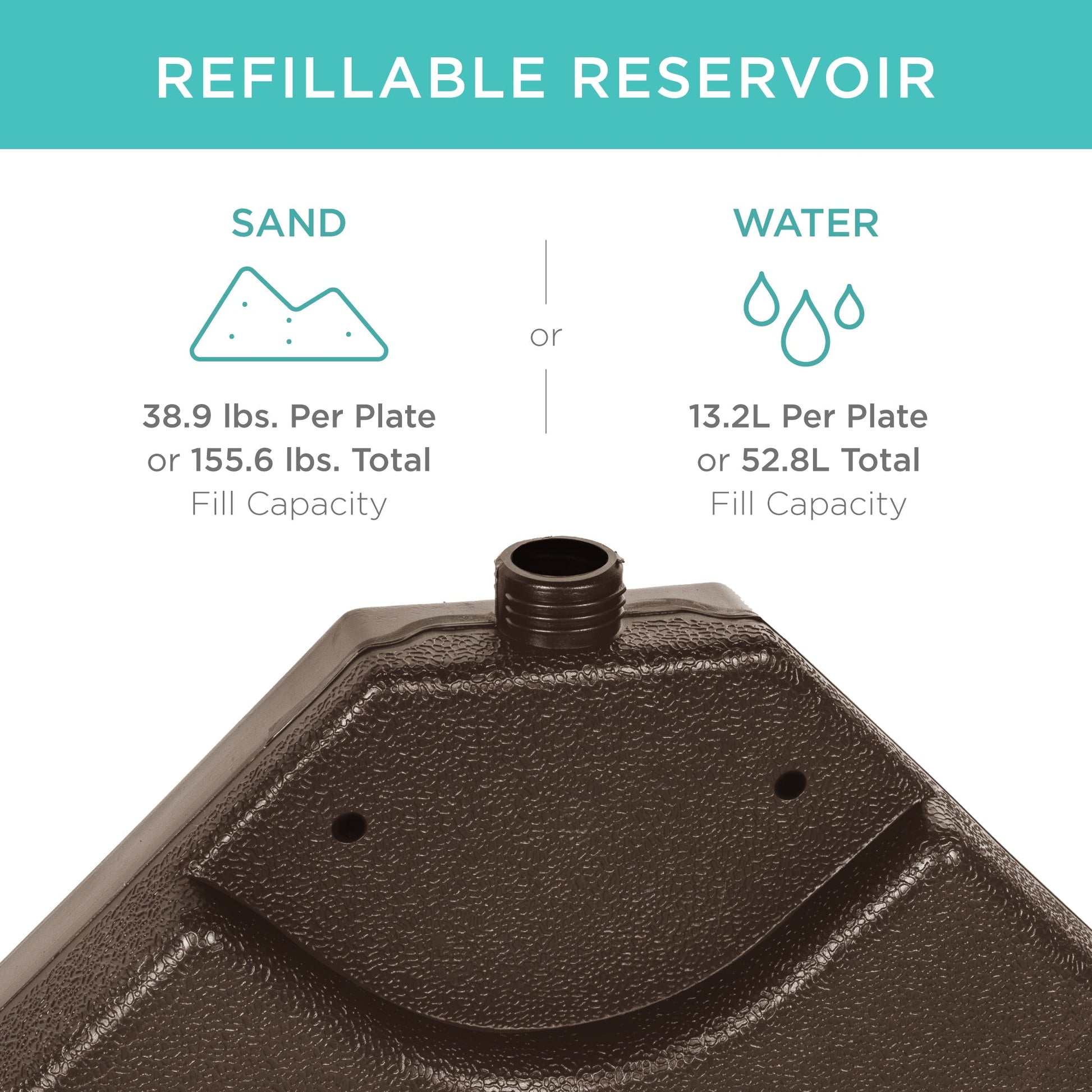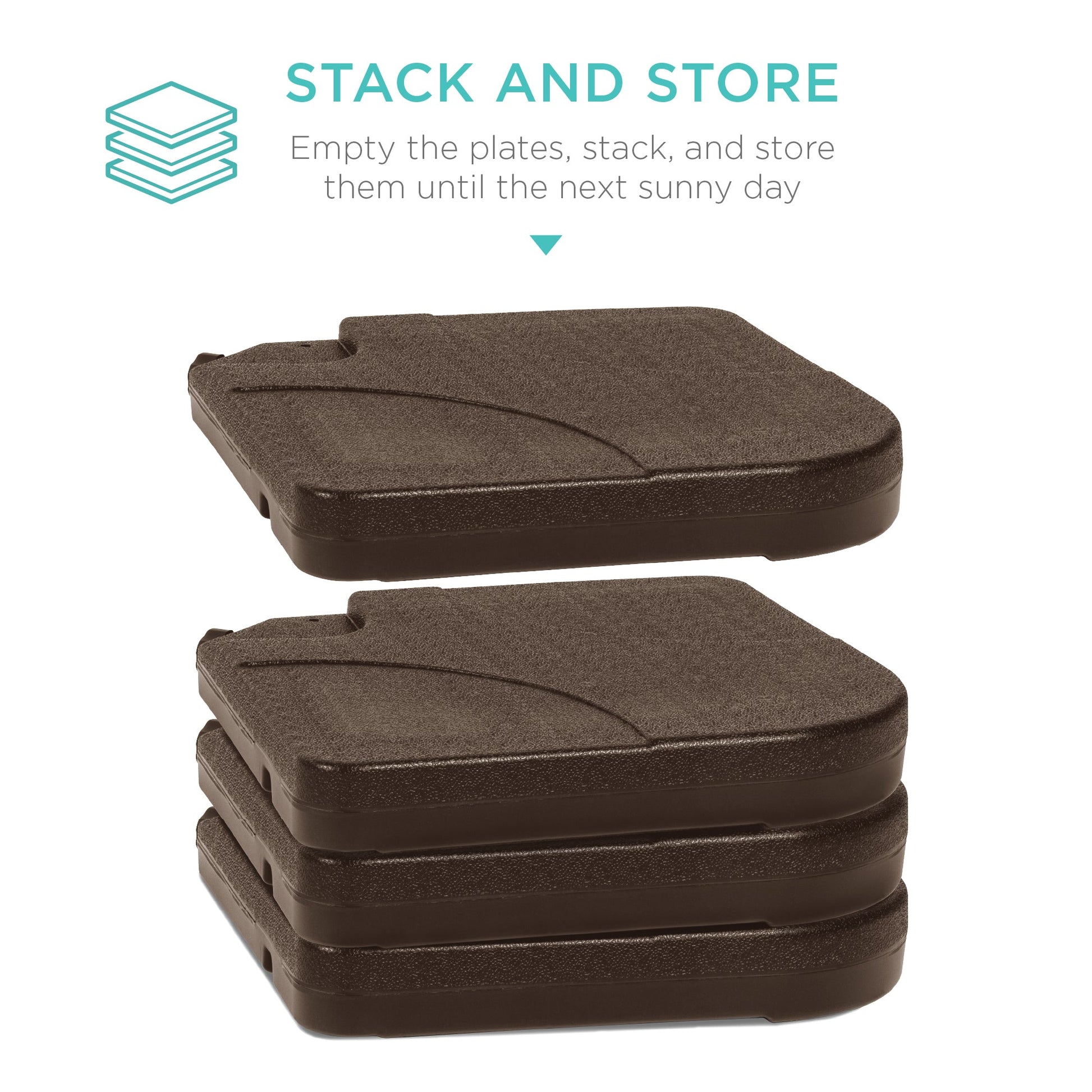 • HIGH WEIGHT CAPACITY: The plates can hold up to 13.2 liters of water (per plate) or 38.9 pounds of sand (per plate), so your patio umbrella will have a reliable anchor point