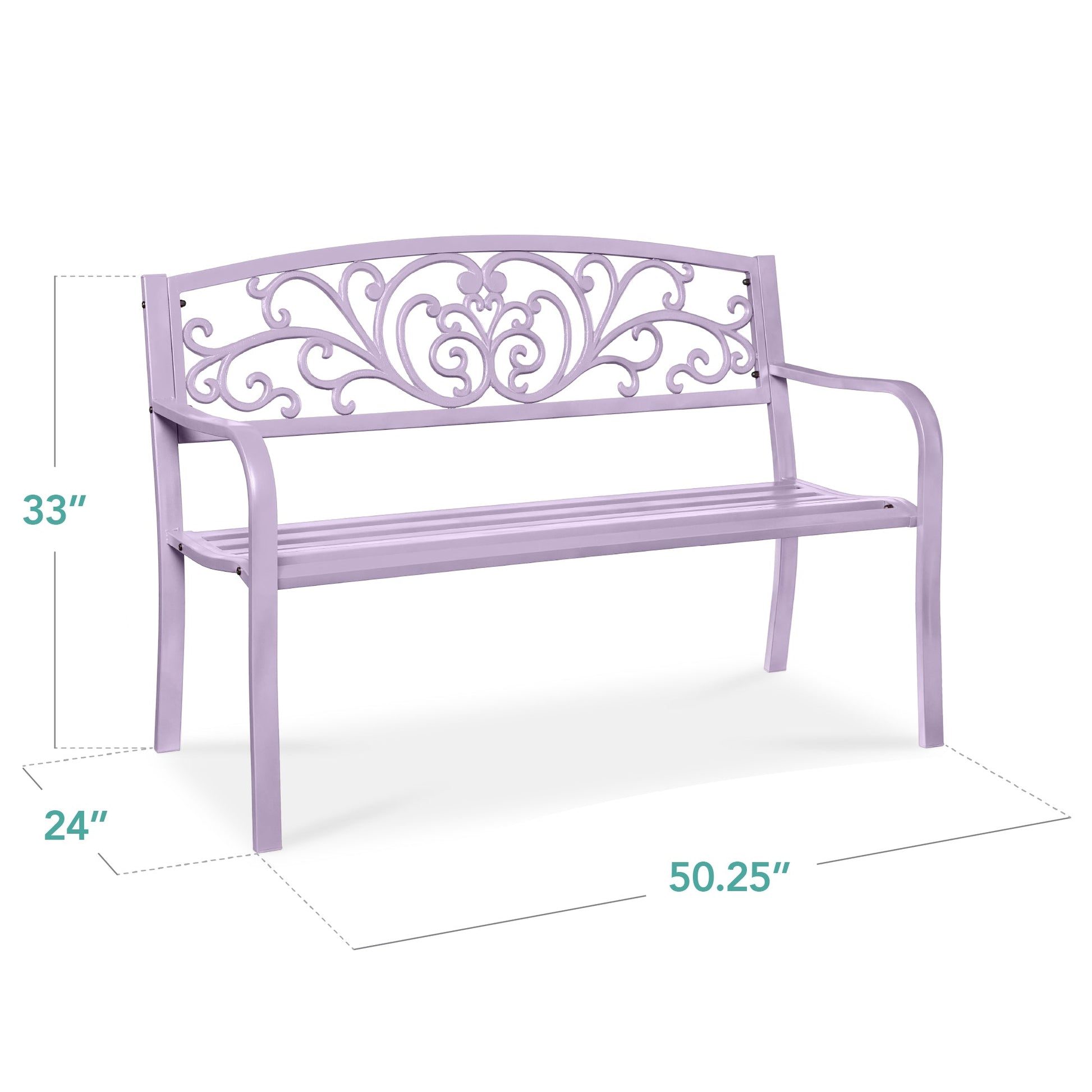 Steel Bench for Outdoor, Patio, Garden w/ Floral Design - 50in