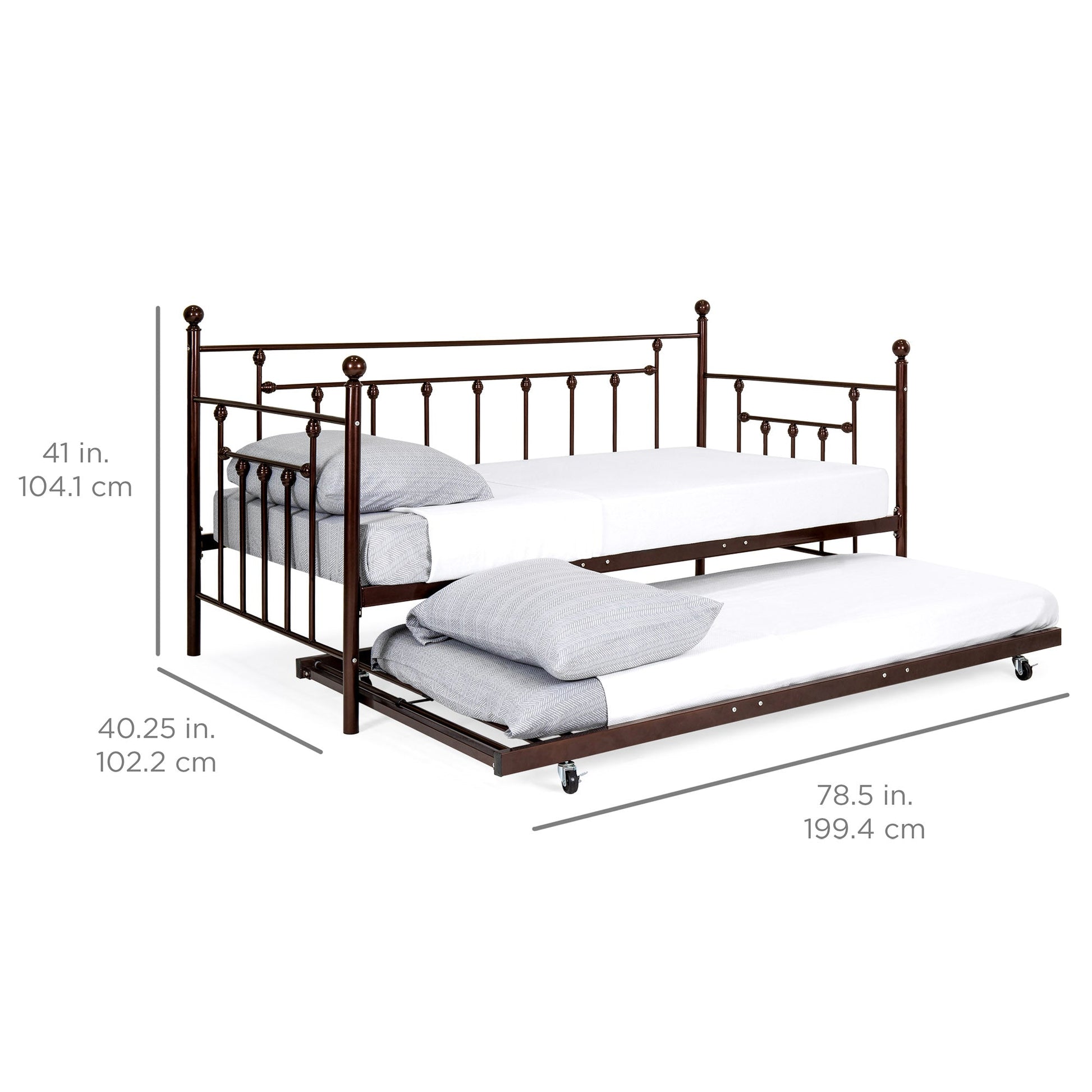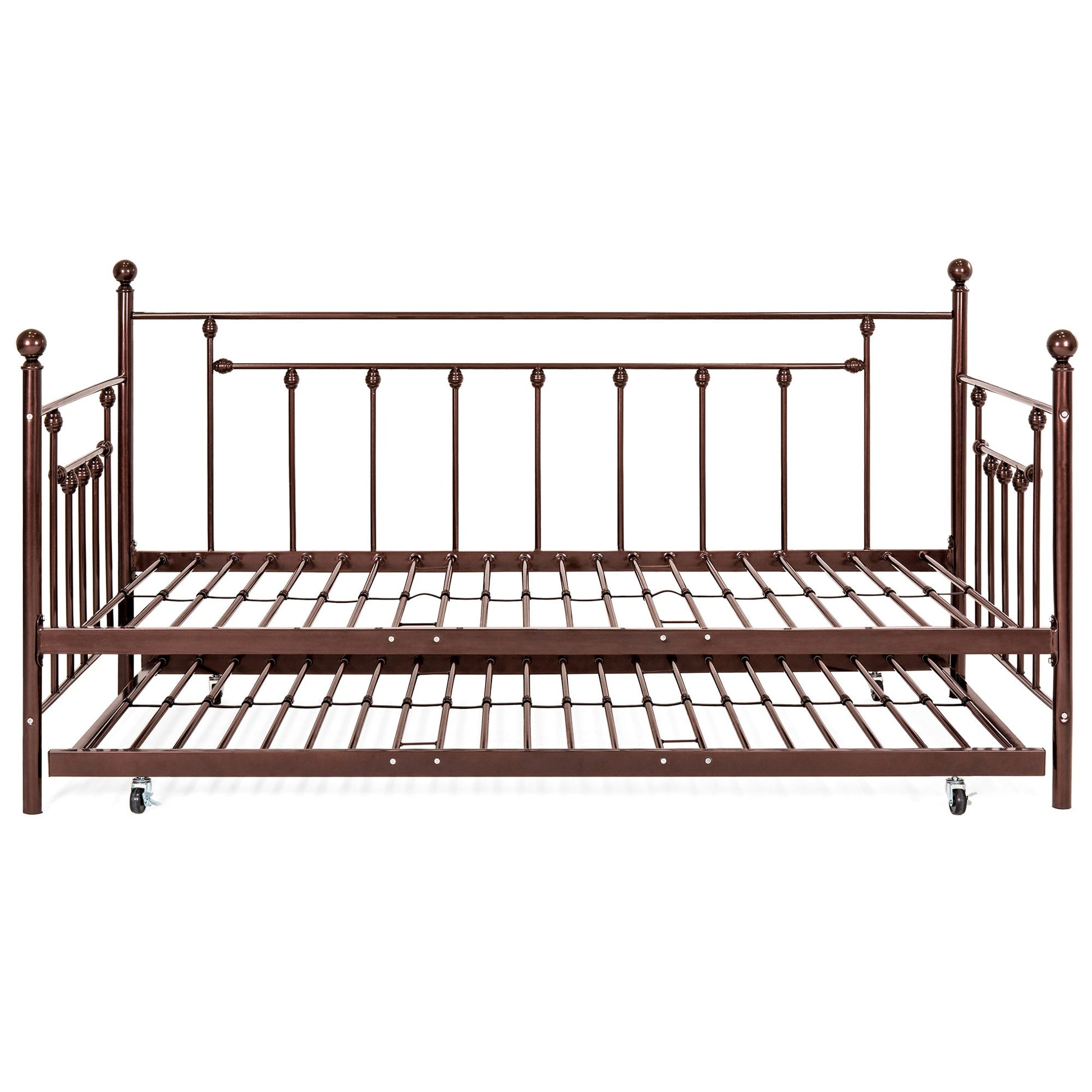 Twin Sized Metal Lounge Daybed Frame w/ Trundle, Finials
