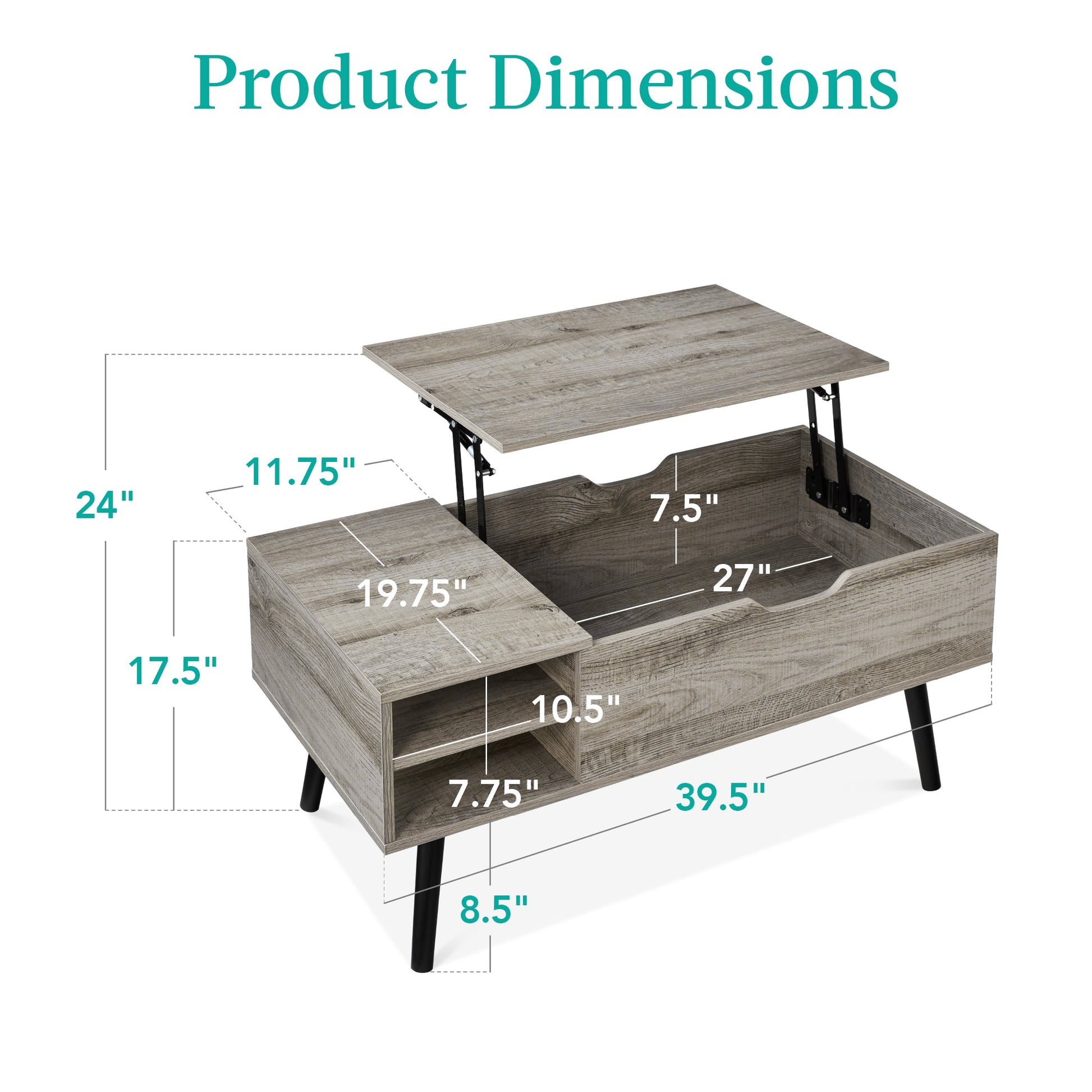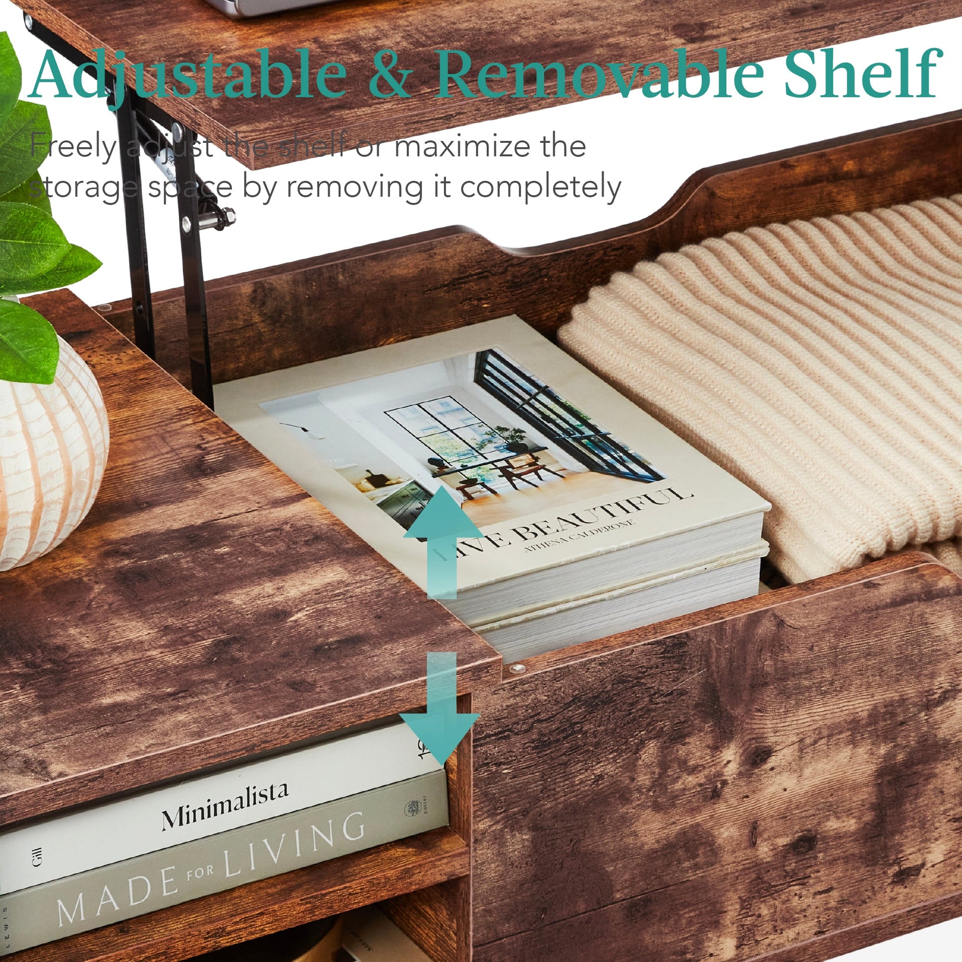 Wooden Mid-Century Modern Lift Top Coffee Table w/ Removable Shelf