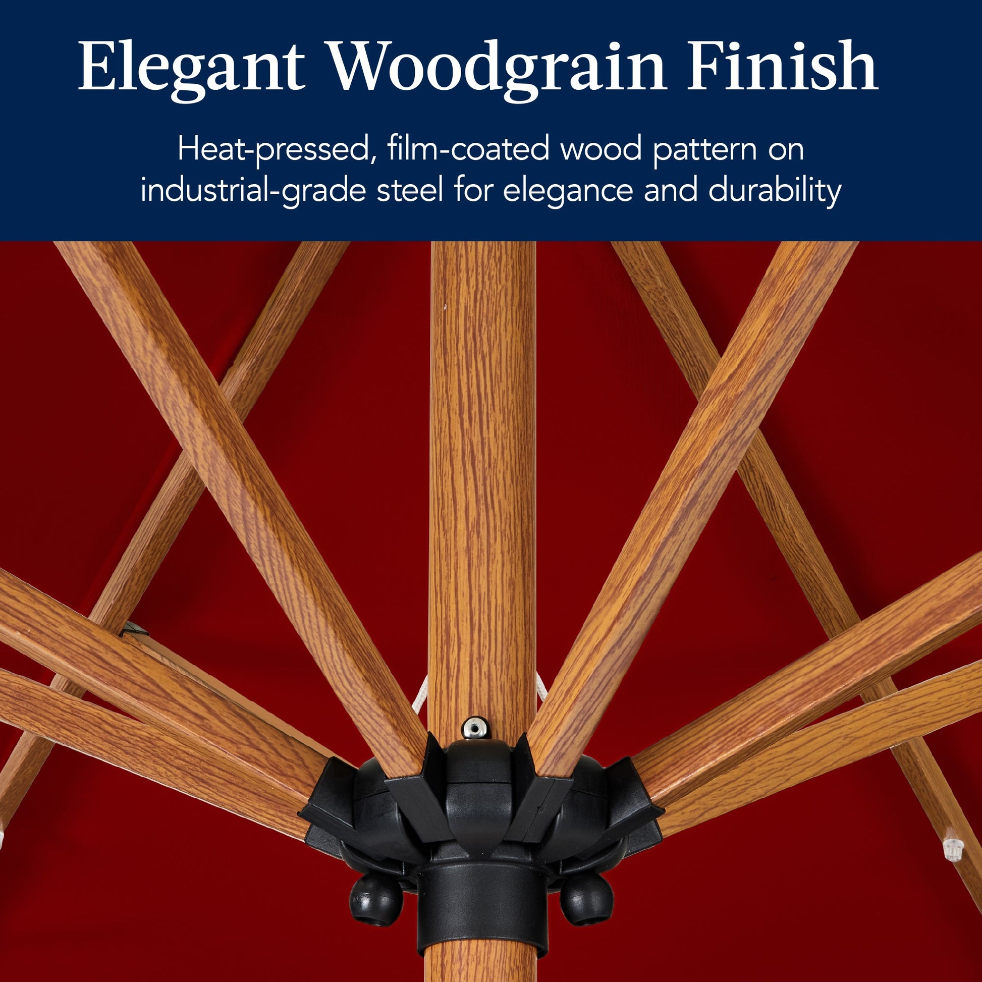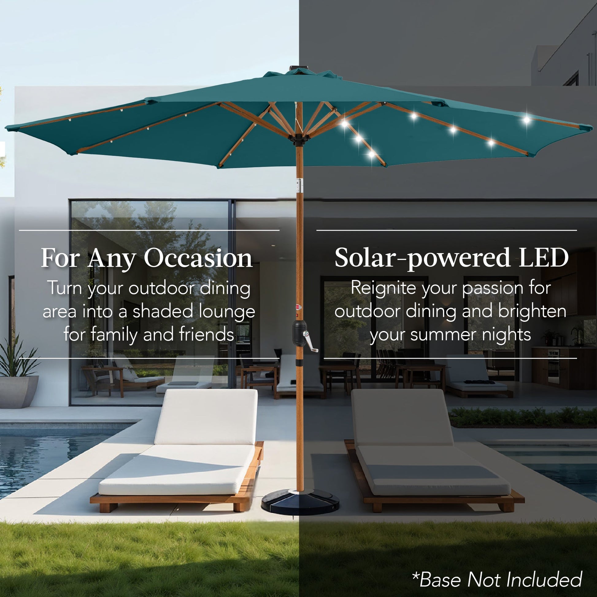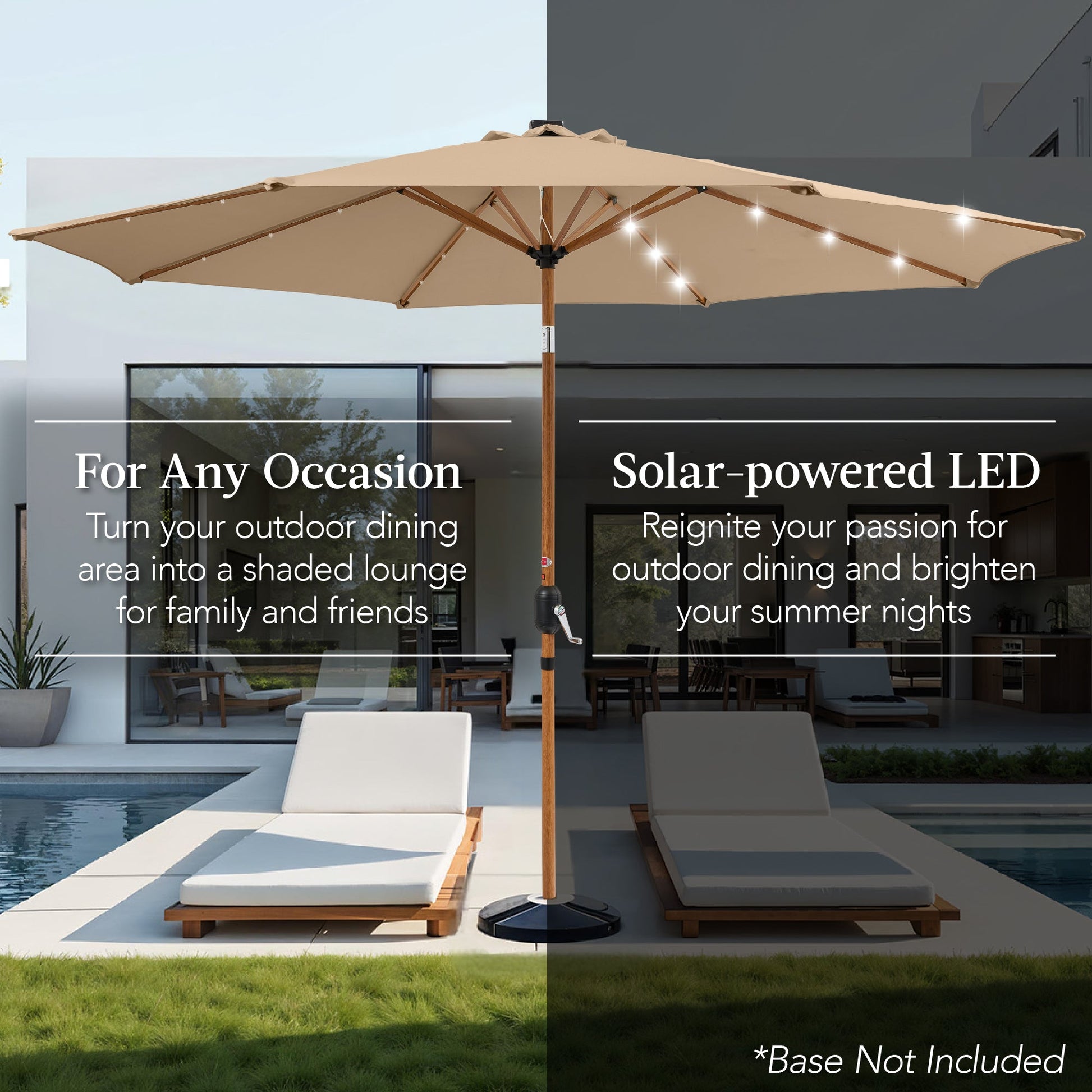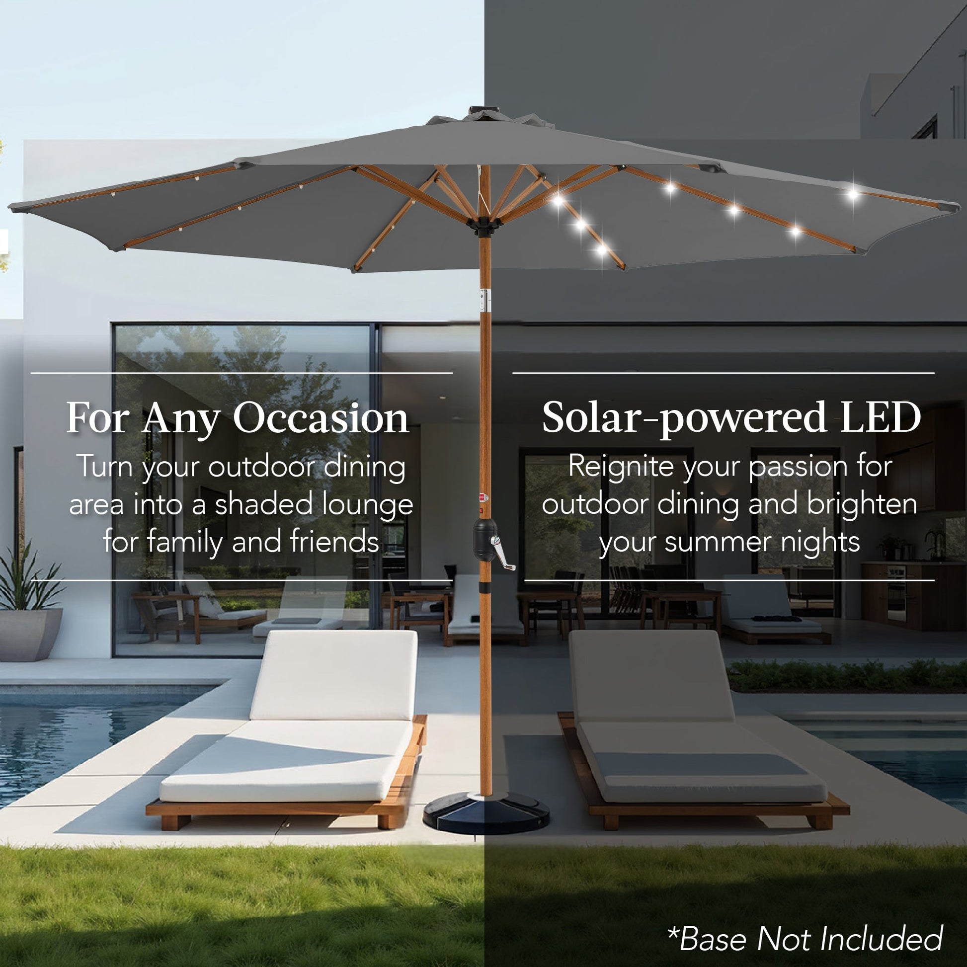 Woodgrain Pattern Solar LED Lighted Patio Umbrella w/ Adjustable Tilt - 10ft