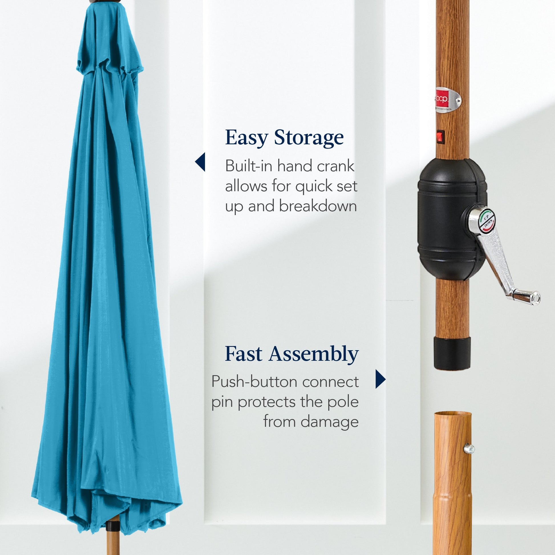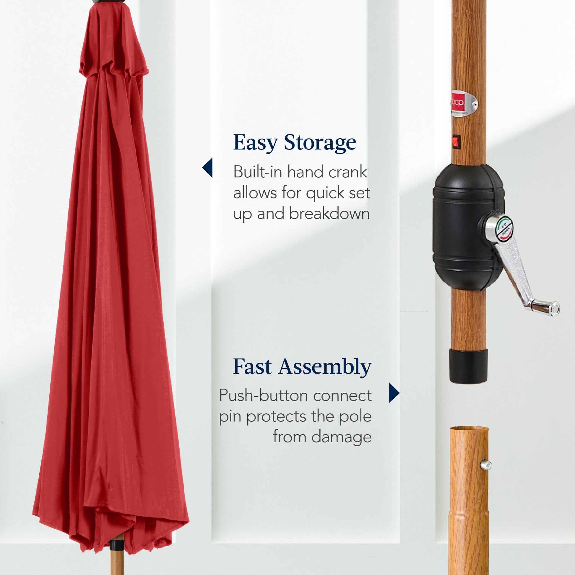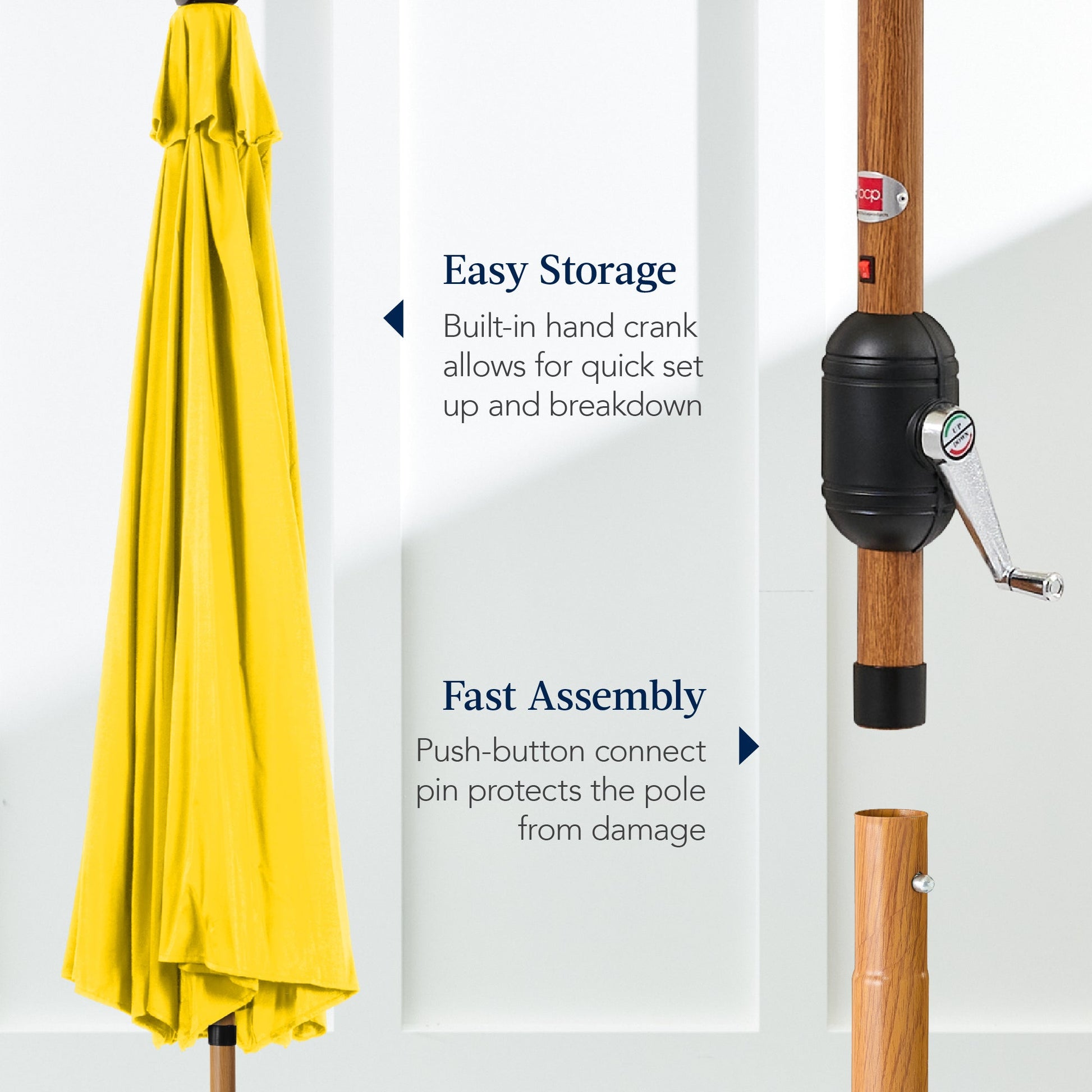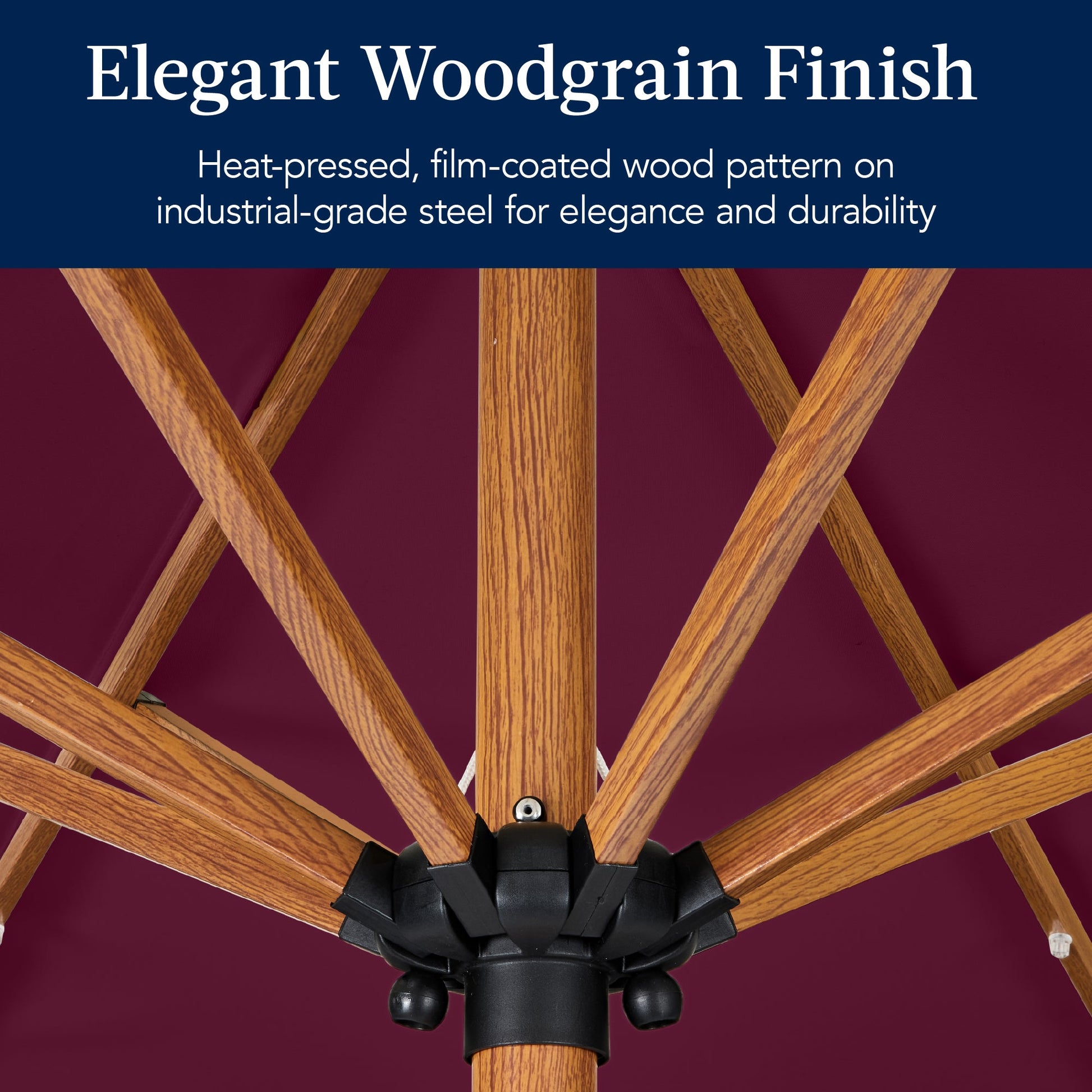 Woodgrain Pattern Solar LED Lighted Patio Umbrella w/ Adjustable Tilt - 10ft